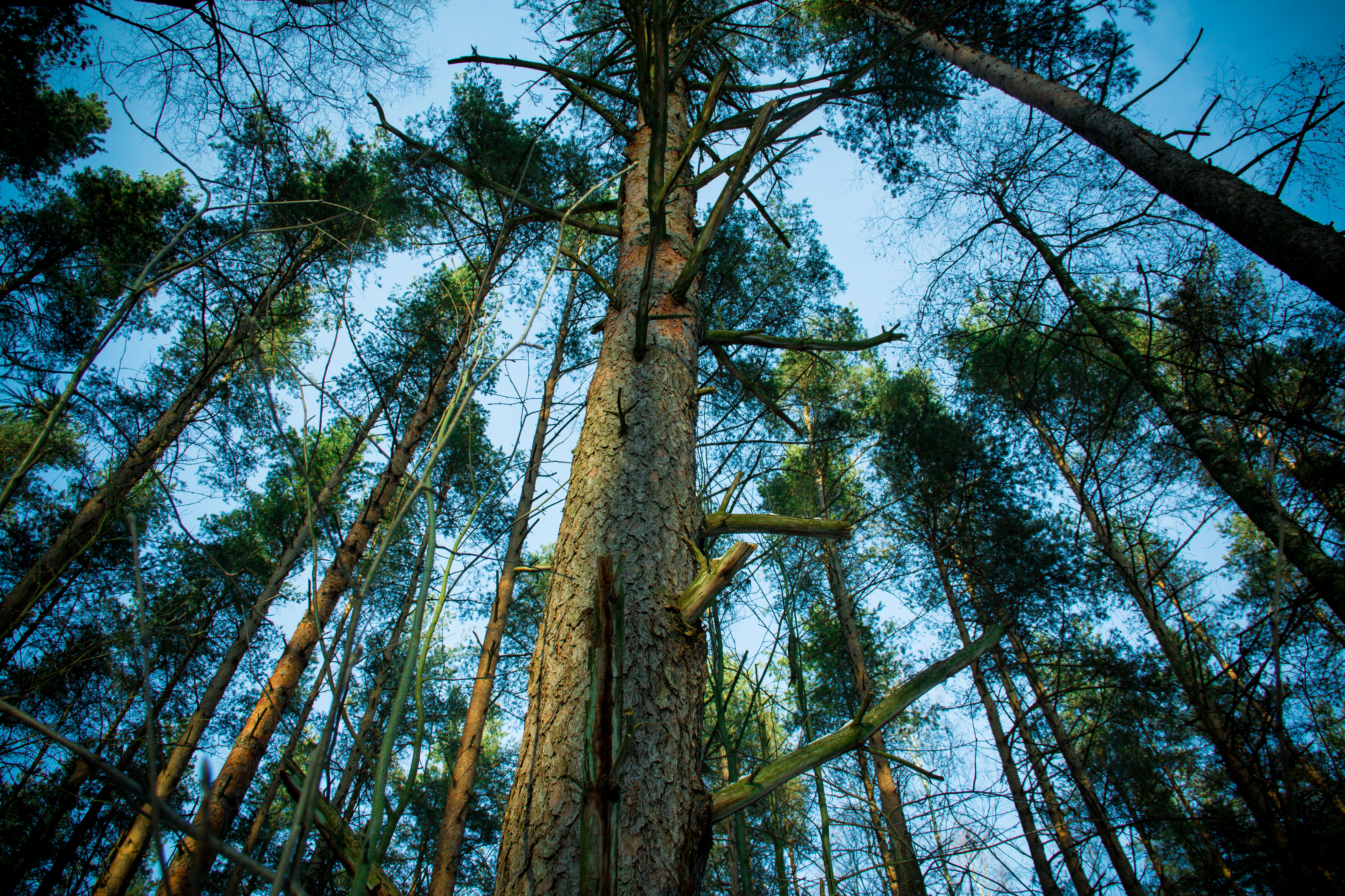 Широкий угол объектива помогает увеличить передний план, линейная перспектива становится более активной, ствол устремляется вверх.
