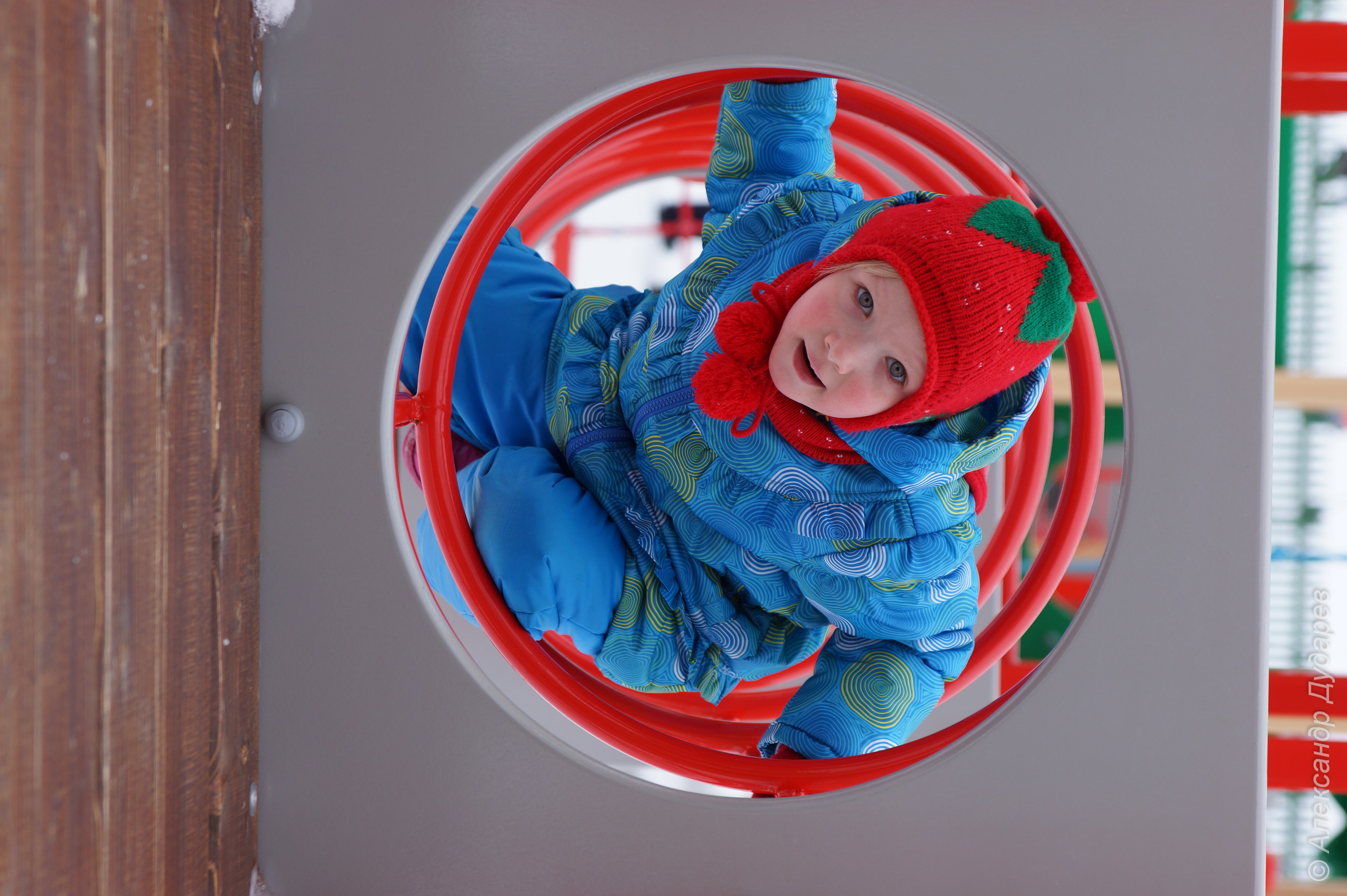 Получилась как бы фотография в фотографии, ведь элементы детской площадки выступают в качестве естественной рамки.