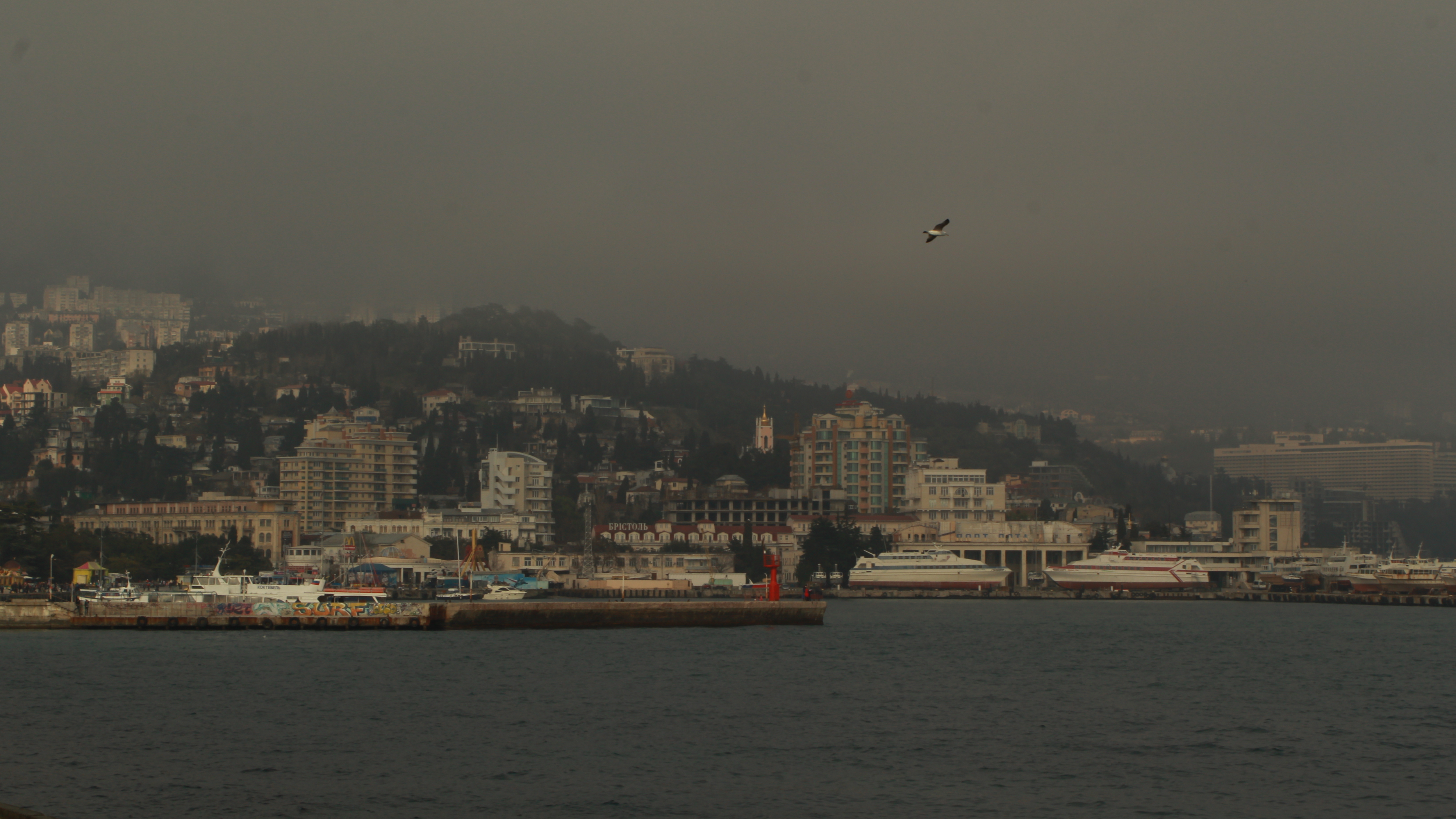 Гору на заднем плане закрыла густая серая туча. Полное отсутствие горы мне показалось интересным. Чайка оживила картинку.