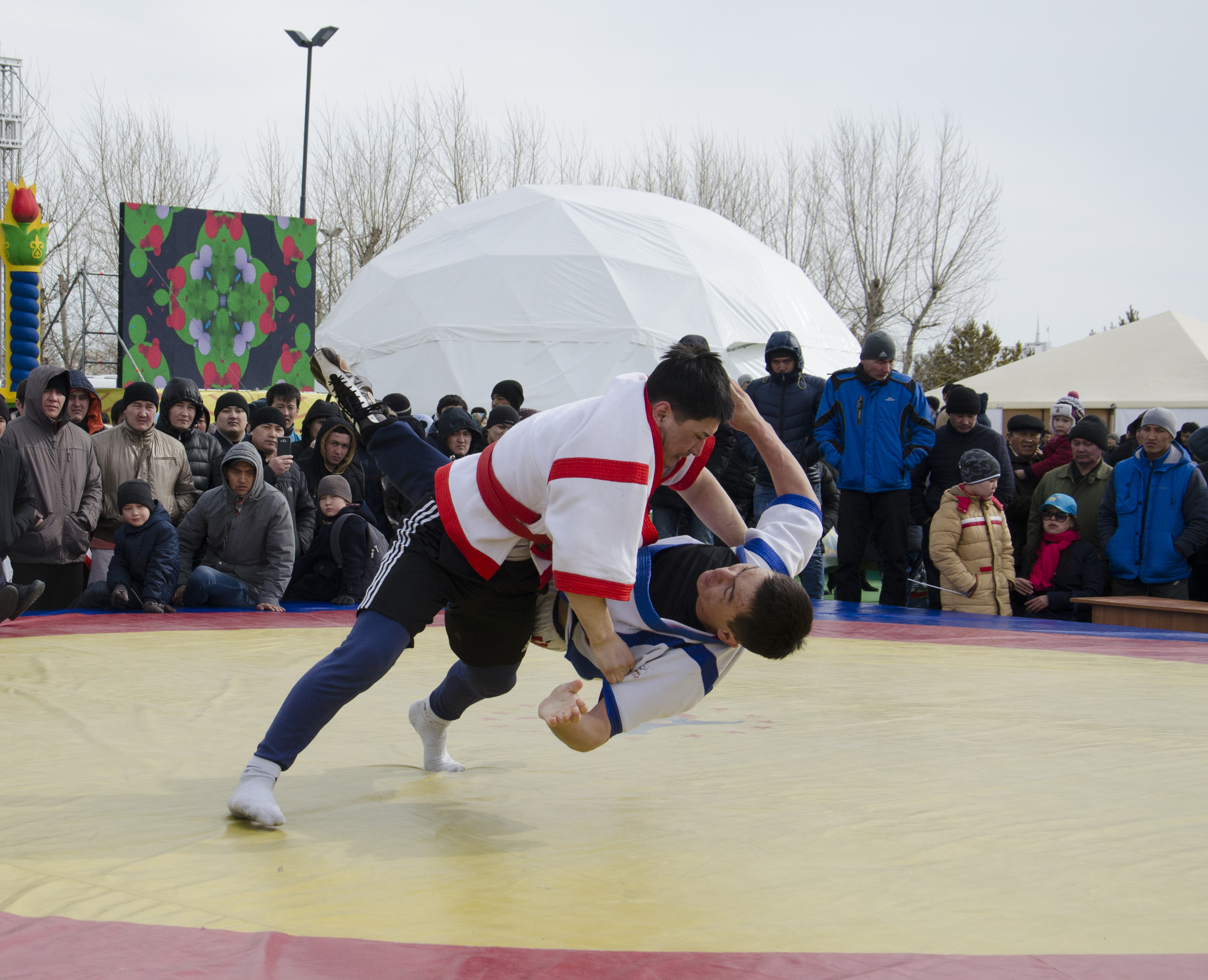 Борцы на празднике. Снимал в приоритете диафрагмы, но света было достаточно для выдержки, позволившей "заморозить" движение.
