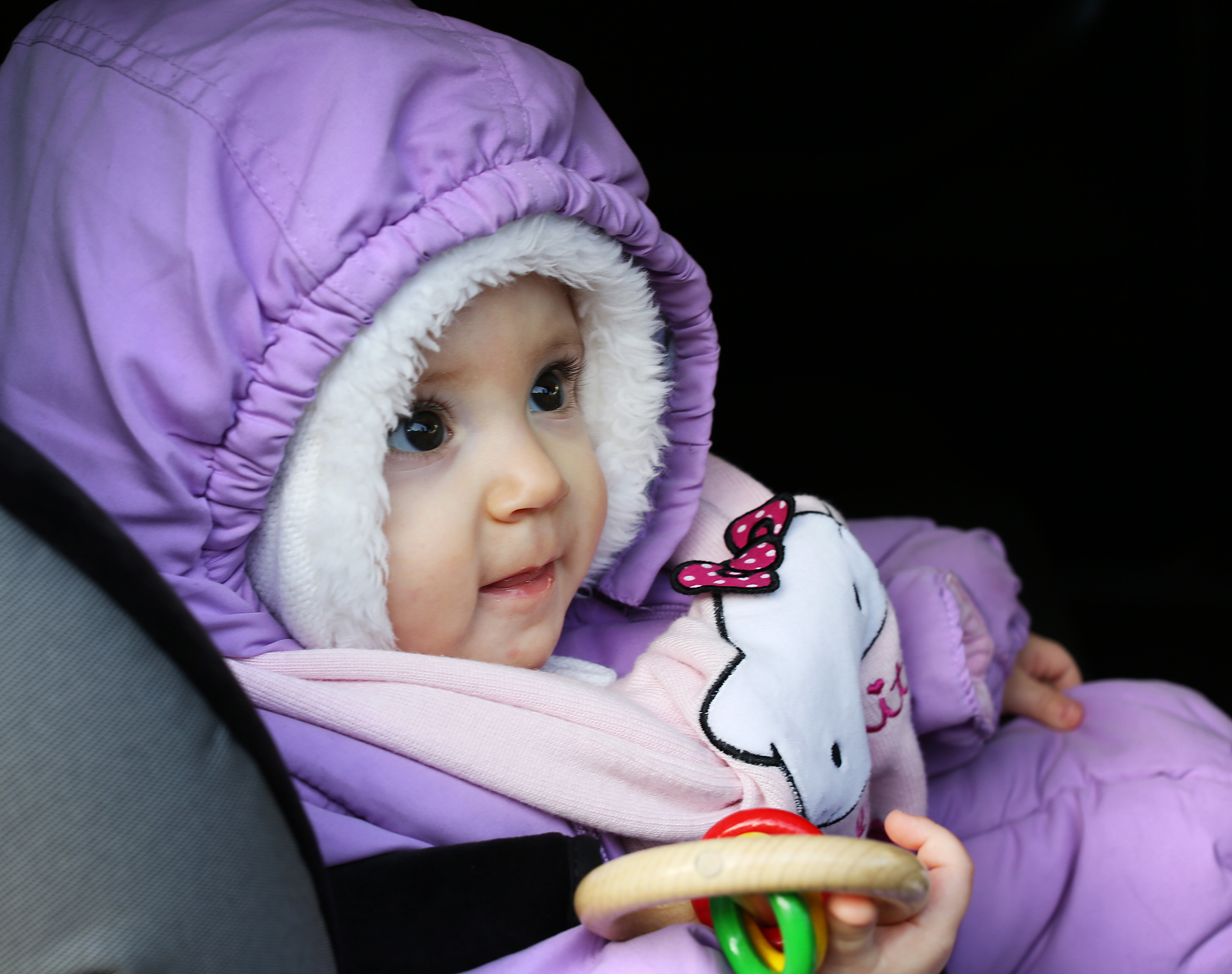 Ребенок в кресле на саднем сиденье автомобиля. Свет из окошка падает на личико через диффузорную ткань, а все остальное "утонуло" в облицовке.