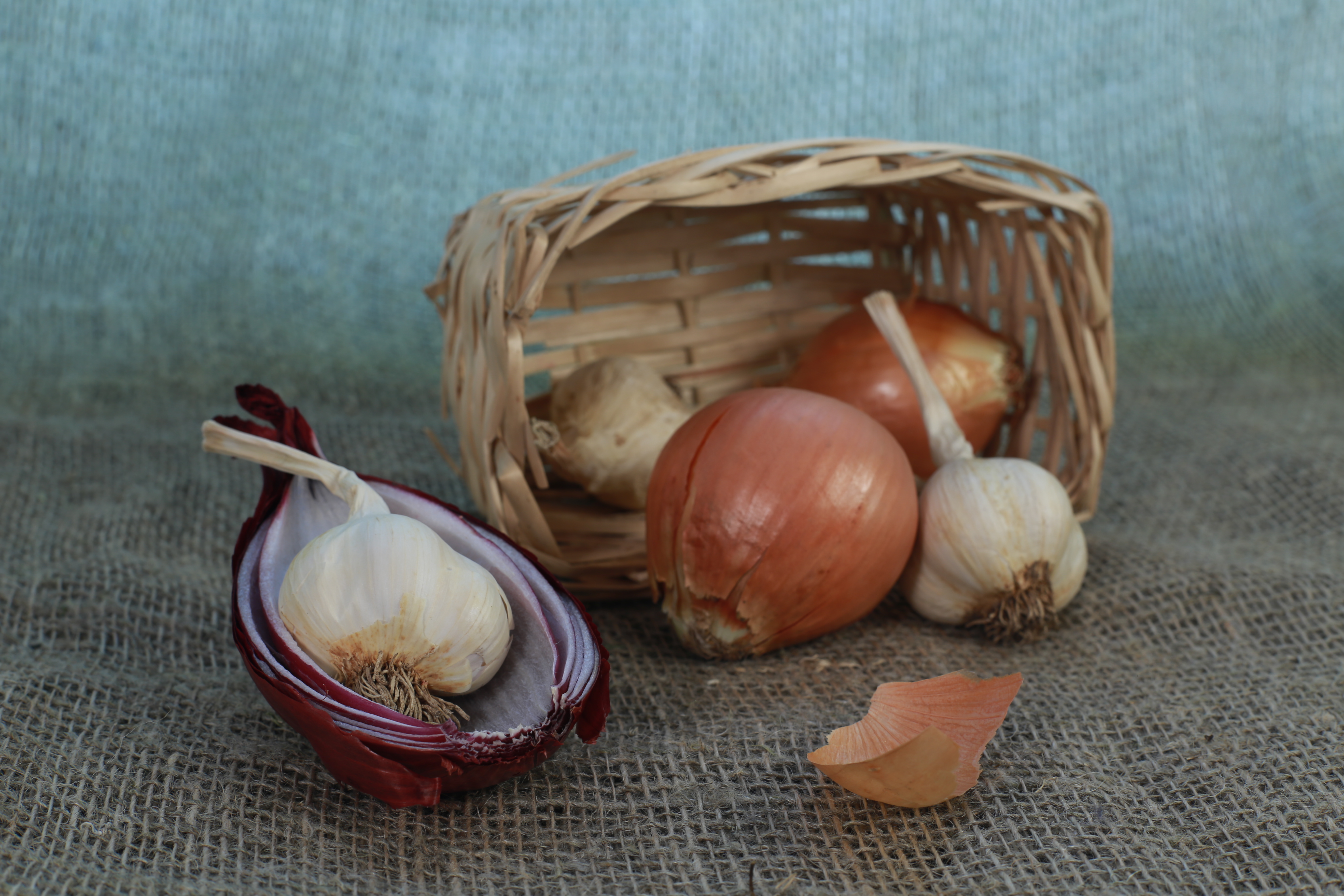 Юрий, этот сюжет получился более лаконичным . Хорошо выделяется луковица в переднем плане, камера точно сфокусирована на нее. Корзинка хорошо дополняет натюрморт , делает кадр более глубоким. Правильно подобрали параметры экспозиции, натюрморт хорошо детализирован. Хорошо расположили фон, он отлично подходит для данной композиции.