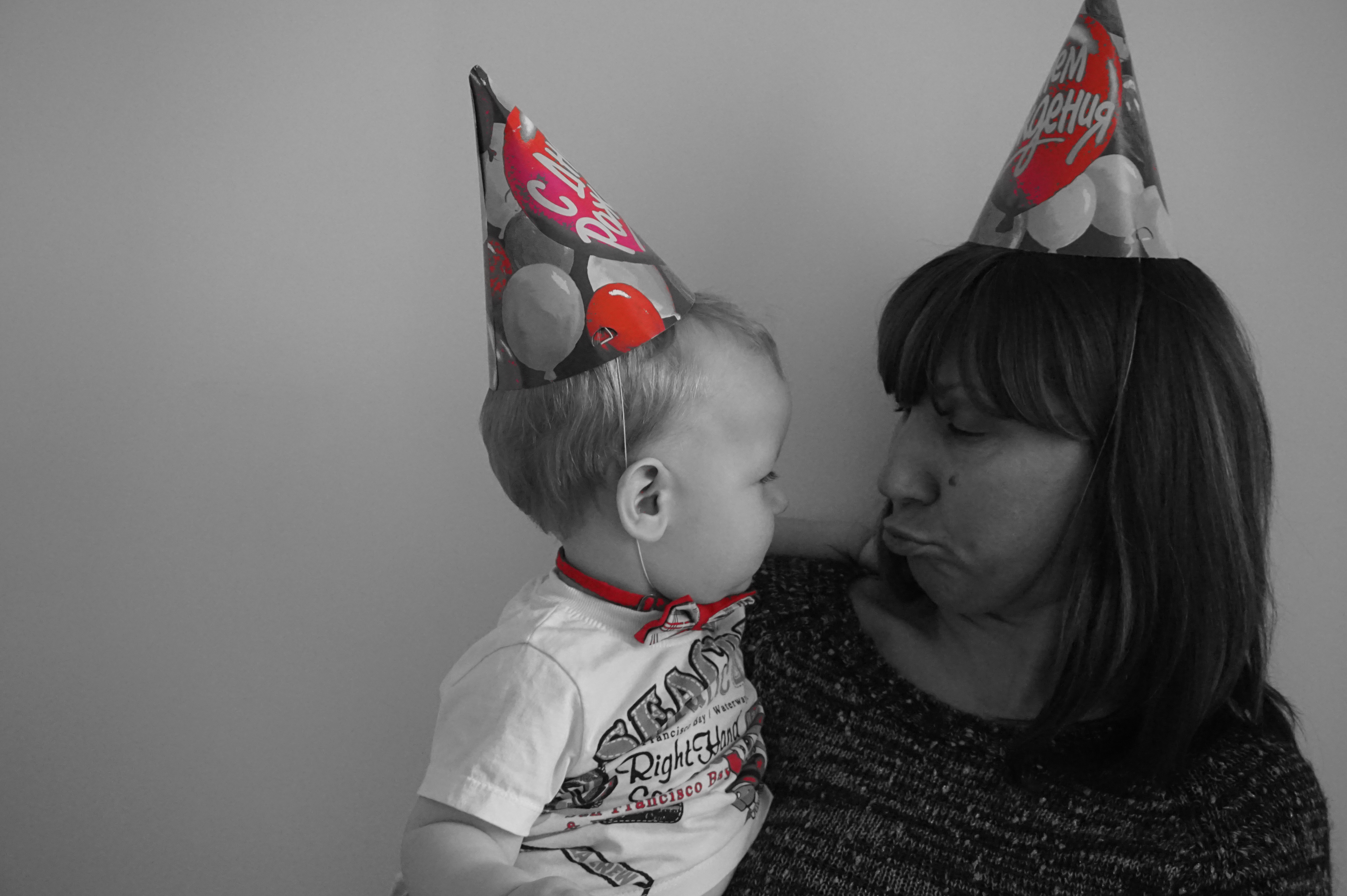 Отлично получилось поймать момент! Удачно выбрали ракурс. Подчеркнули направление лиц мамы и малыша друг к другу. Колпачки здорово передают настроение сюжета, праздник !