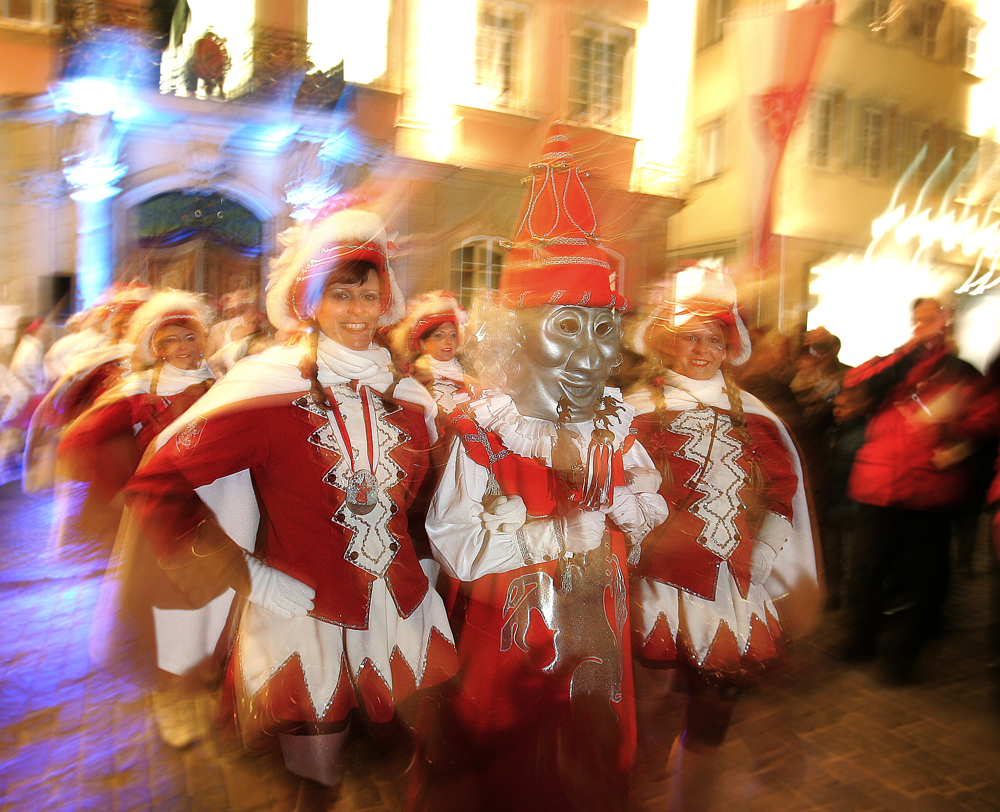 Интересный и динамичный снимок у вас получился! Техника съемки с синхронизацией вспышки по второй шторке позволила вам и смаз показать от движения, и в то же время заморозить лица героев в кадре.