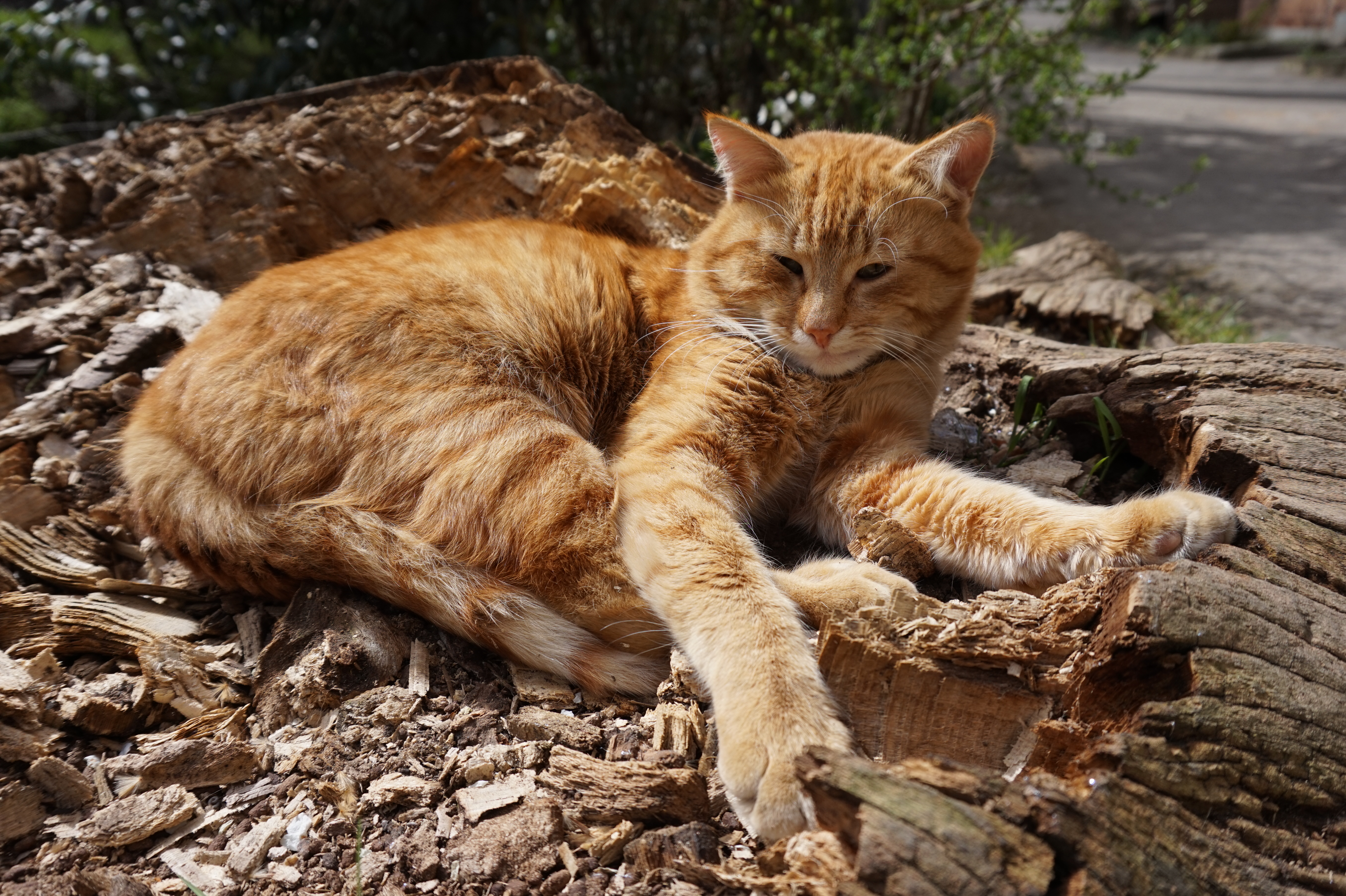 Выбрала хорошее освещение, снимала в режиме А, котик грелся на солнышке в огромном пне. ИСО изменила. Работу над ошибками провела.
