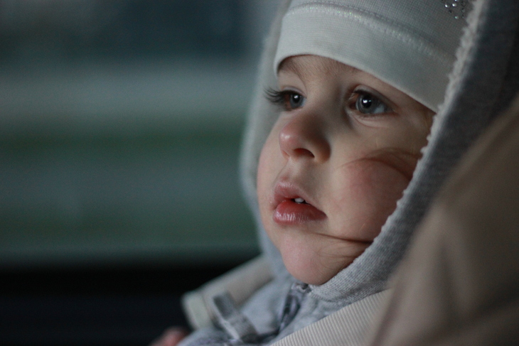 Вечер, едем в машине на заднем сидении после ф/с. Правило третей, открытая диафрагма, фокусировка на ближайший глаз, место в направлении взгляда, пространство по краям, съемка с уровня глаз ребенка - всё, как описали в уроке)))