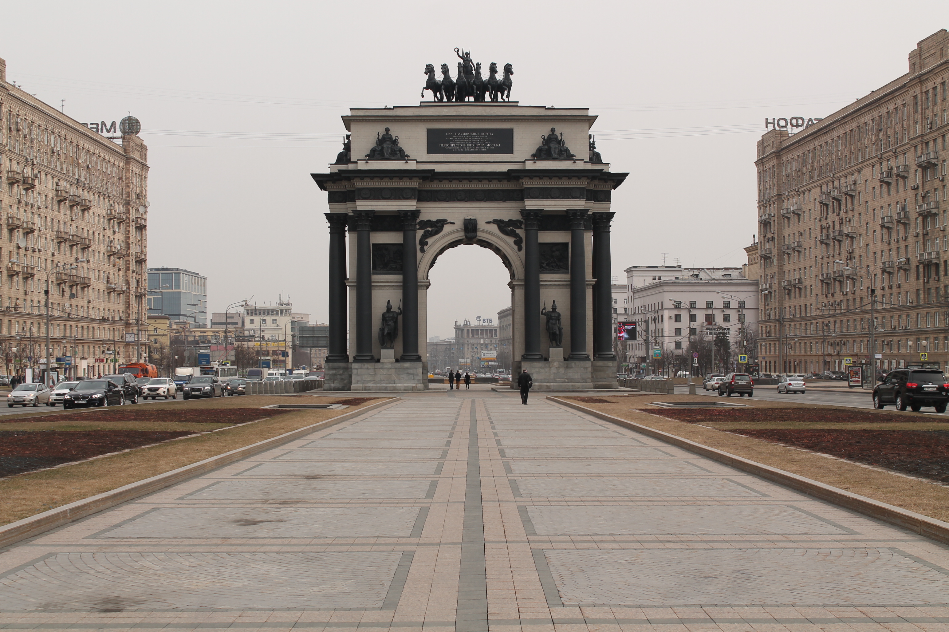 С помощью объектов маркеров (люди, автомобили) передал размер основного объекта - арки. К тому же, на мой взгляд, удачно сработали линии и симметрия. С погодой немного не повезло, поэтому снимок немного "серый" получился.