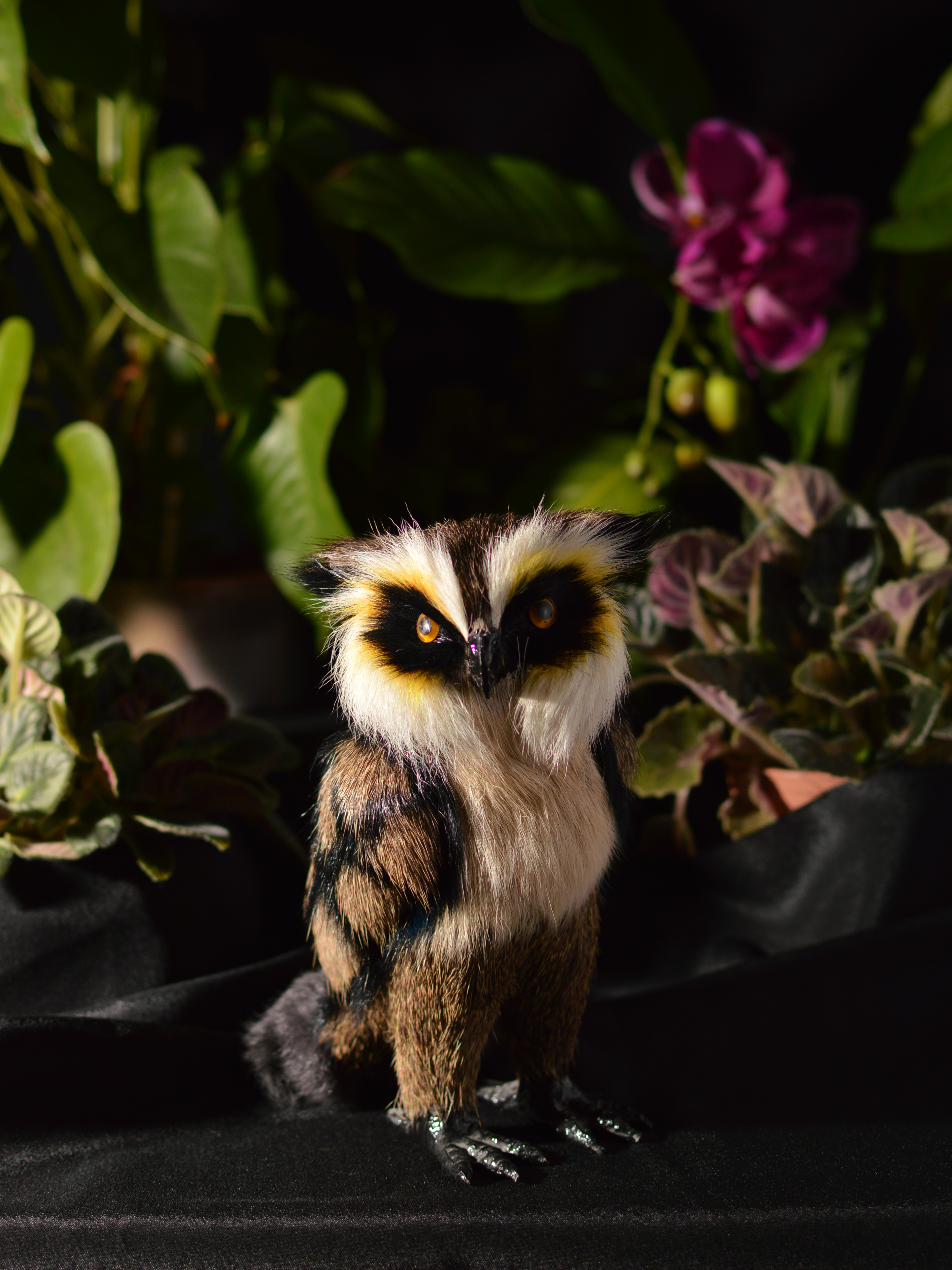 Сова в цветах :). При съемке использовался фикс 35 мм. Источник света - одна вспышка и белый отражатель.