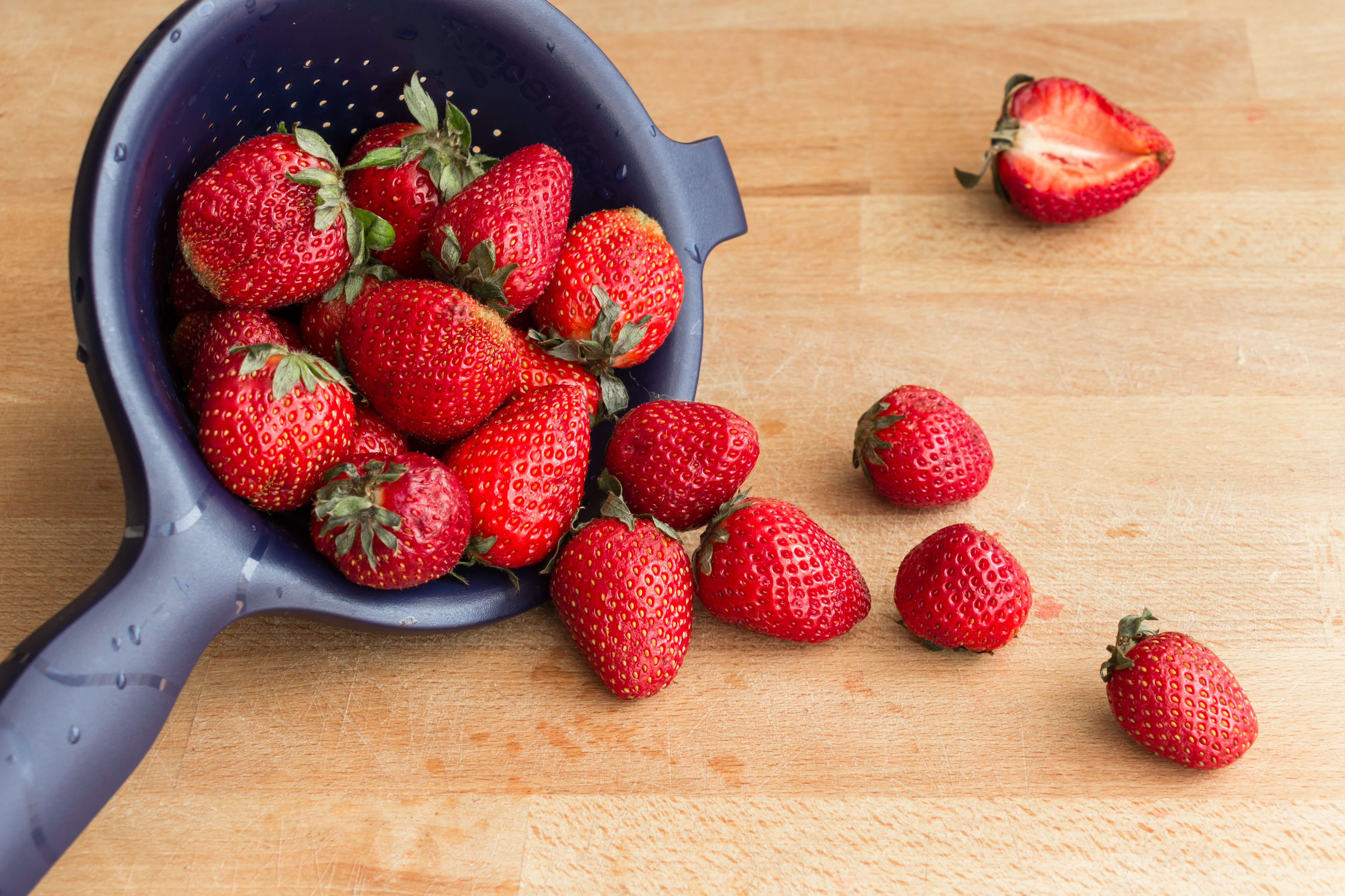 От окружности ситечка расходятся лучиками три диагонали (одна воображаемая к клубничке, линия ягод, линия ручки ситечка), они удачно создают композиционный баланс, задействовав все поле снимка.