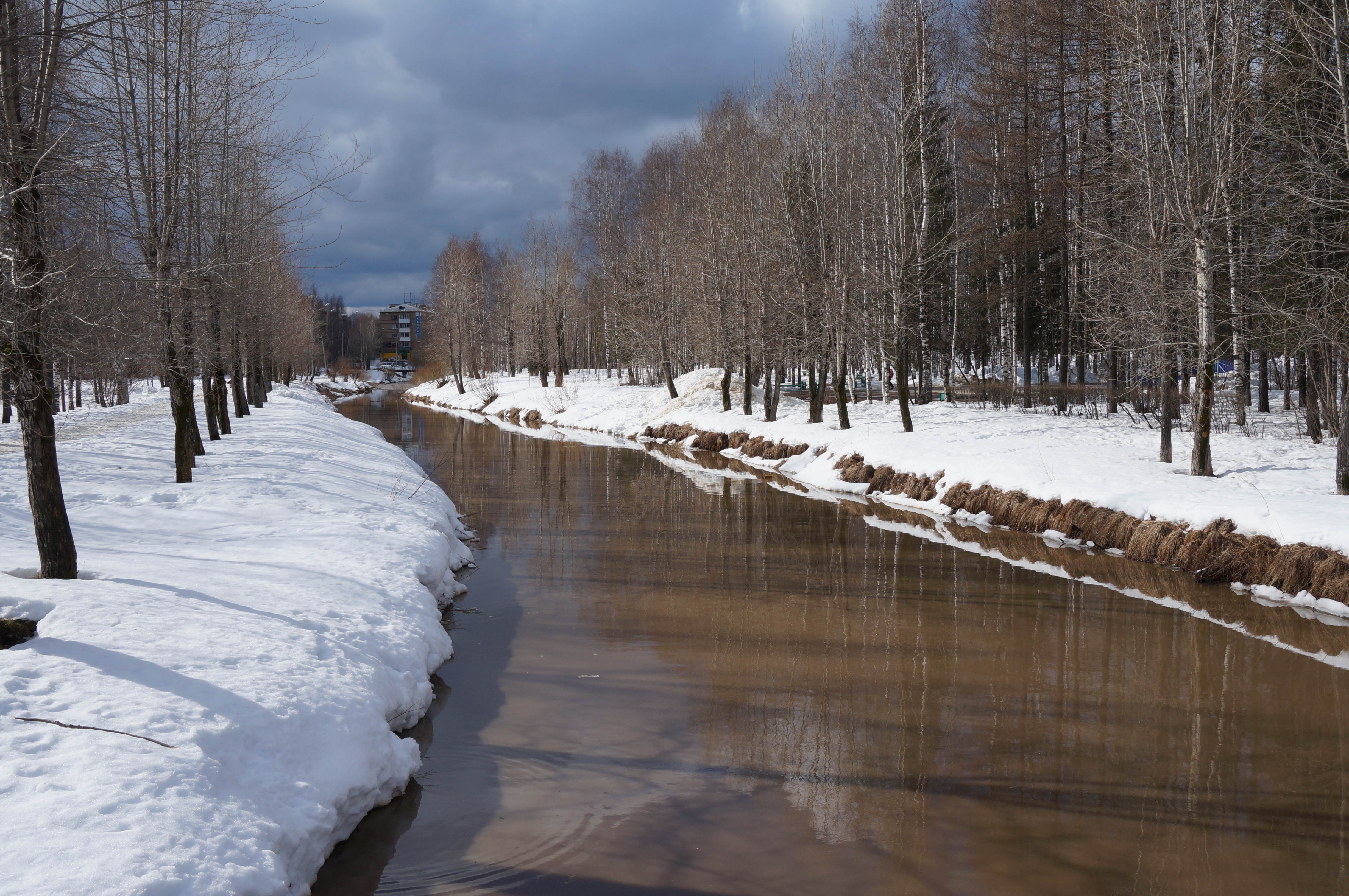 Весна в парке. Изгиб берега реки образует S-образную кривую-линию красоты.
