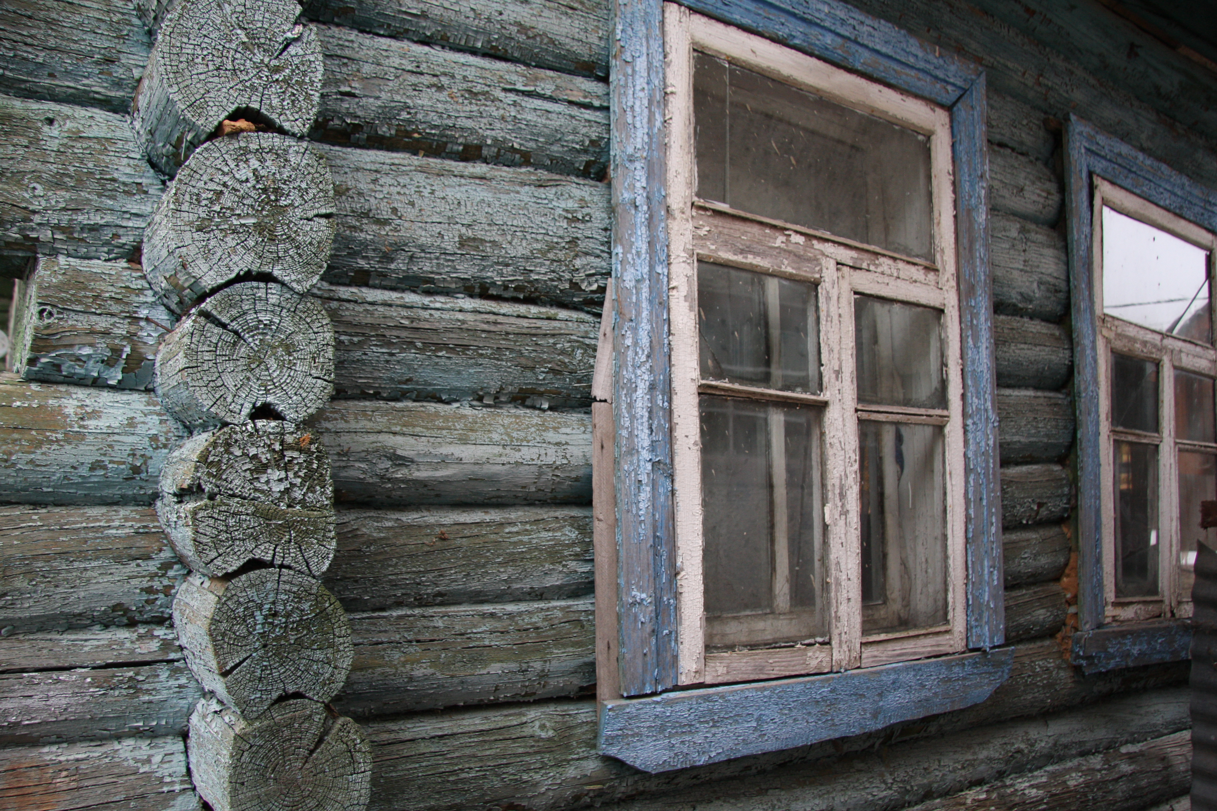 Домик старый, это хорошо подчеркивает рассеянное освещение, проработана фактура краски , рисунок на поверхности дерева.