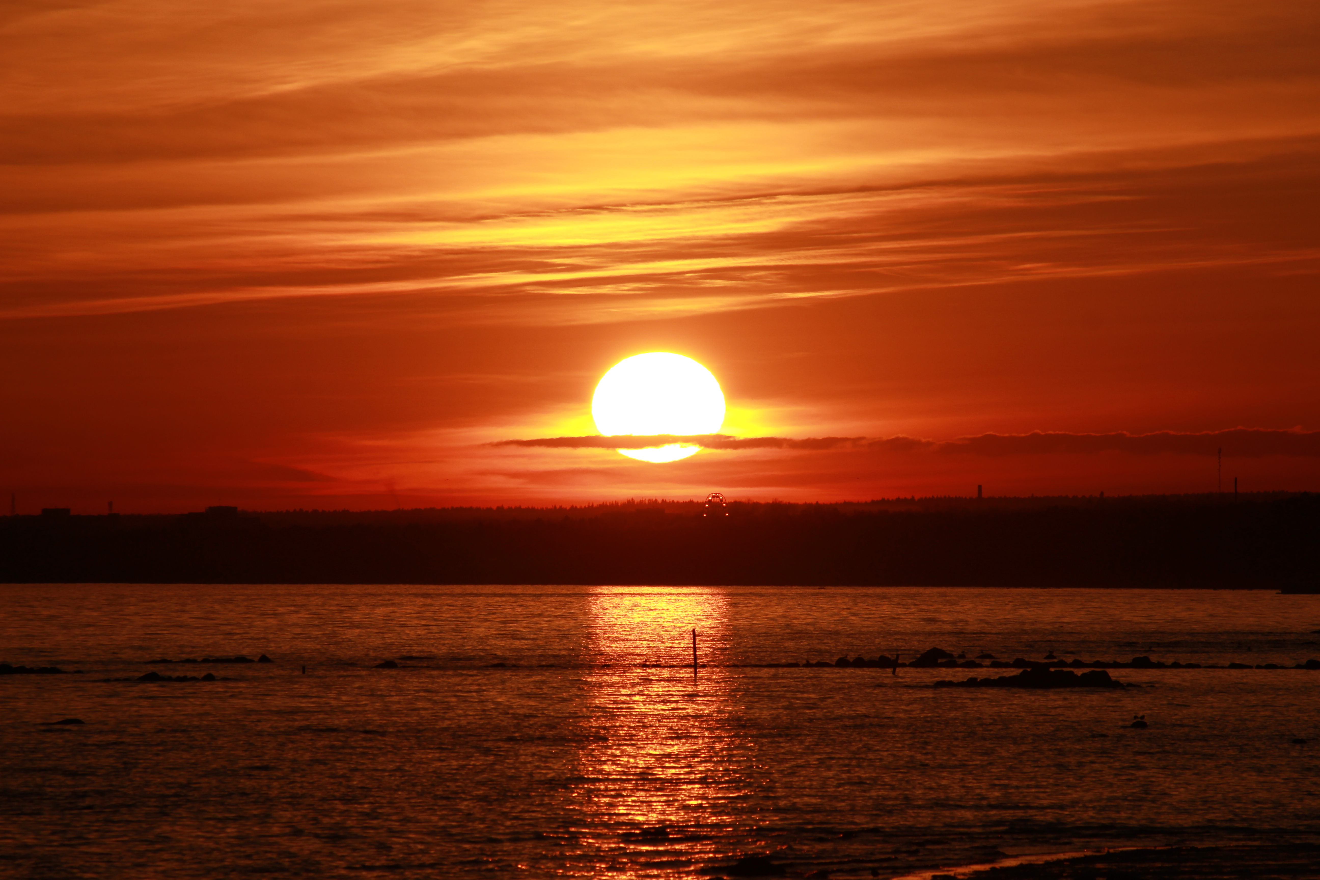 Вот и мой закат. Морально готовилась я к этому снимку долго, несколько дней. Хотела просто закат заснять, без всякого сюжета. Закат наблюдала минут 40, сделала немеренно фотографий (было одно красиво фото с чайкой в полете на переднем плане, но там линия горизонта скошена). Поэтому остановилась на этой. Почему? Наверное, она более удачна на фоне остальных. Однако, сама я не полностью довольна снимком, т.к. и штатива у меня нет (немного смазанное фото), и правило третей почему то здесь я не соблюла, и над солнцем какие-то желтые блики... Я даже согласна переделать фото, только знать бы, что учесть. Кстати, еще вопрос не менее важный: как обезопасить глаза, ведь приходится долго смотреть через объектив на солнце?