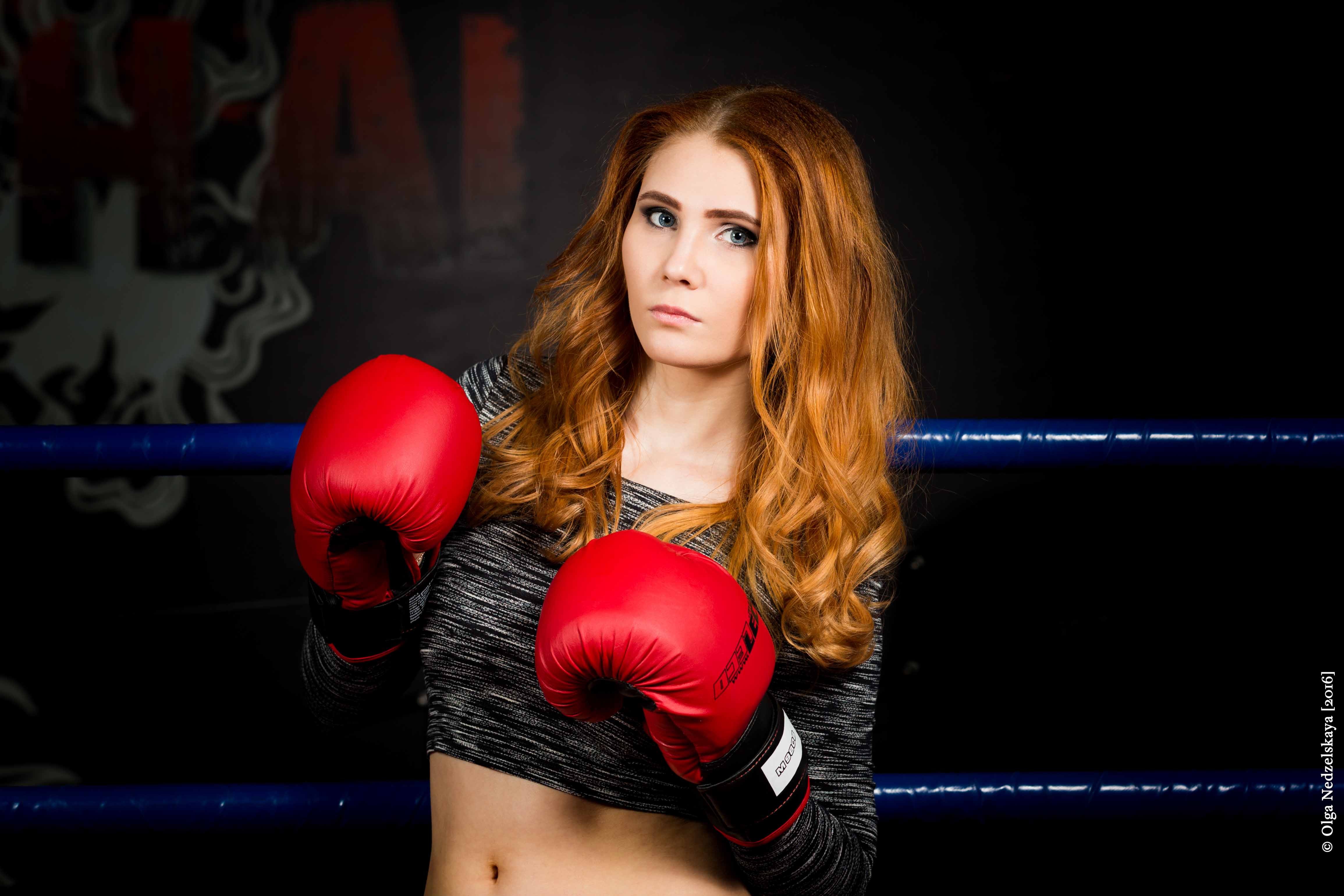 Хочется пойти еще дальше и сделать образ правдоподобнее. Сейчас все-таки не верится, что девушка занимается боксом, скорее ощущение, что она надела чужие перчатки. Было бы хорошо хотя бы сменить том на более открытый и спортивный, собрать волосы и попросить модель показать эмоции - злость, упорство.