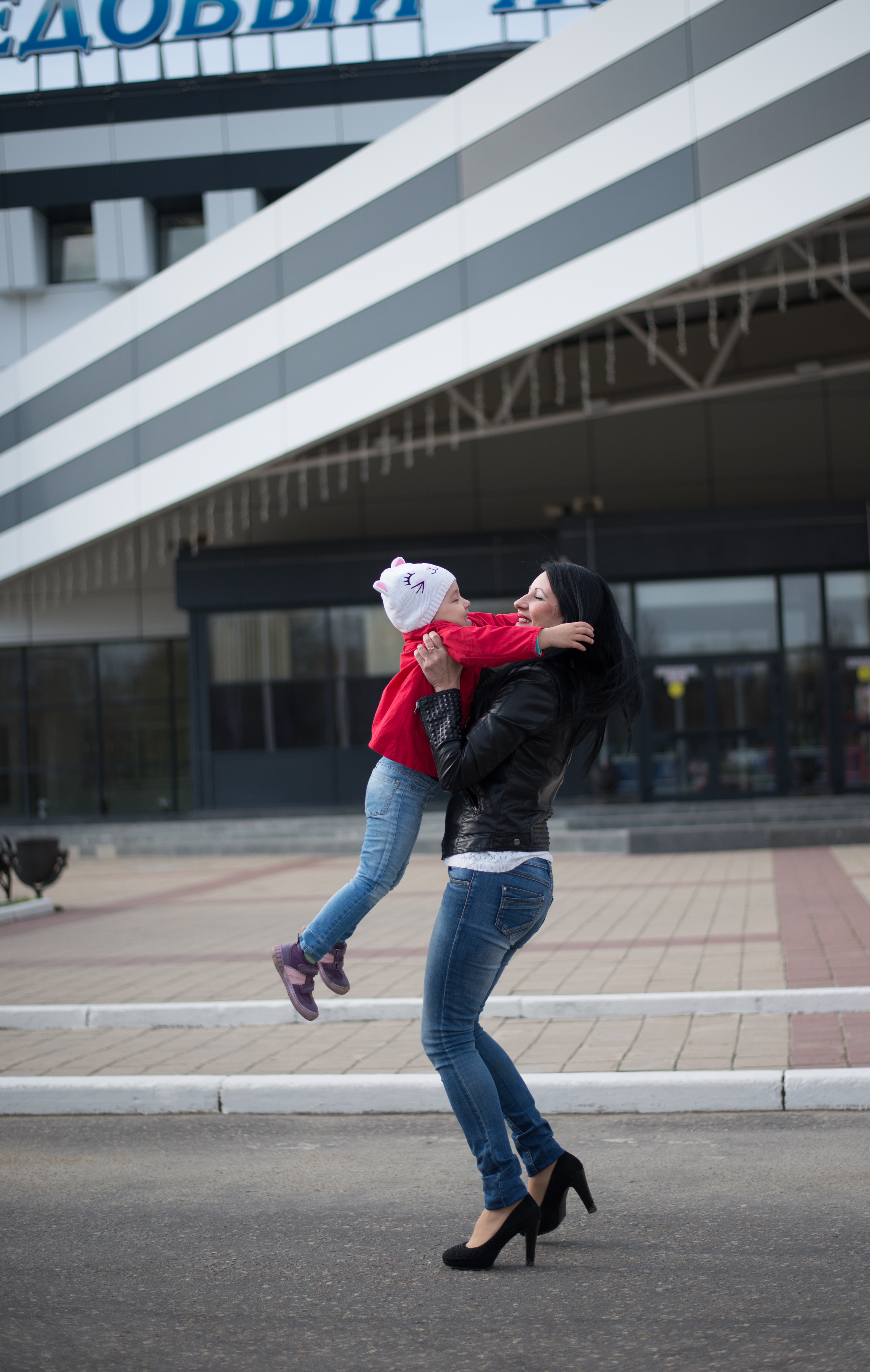 Замечательная фотография, чудесный, трогательный момент! Короткая выдержка помогла вам полностью заморозить движение, несмотря на его быстроту, фотография резкая. И очень эмоциональная, здорово, что передали живой момент взаимодействия девочки и мамы.