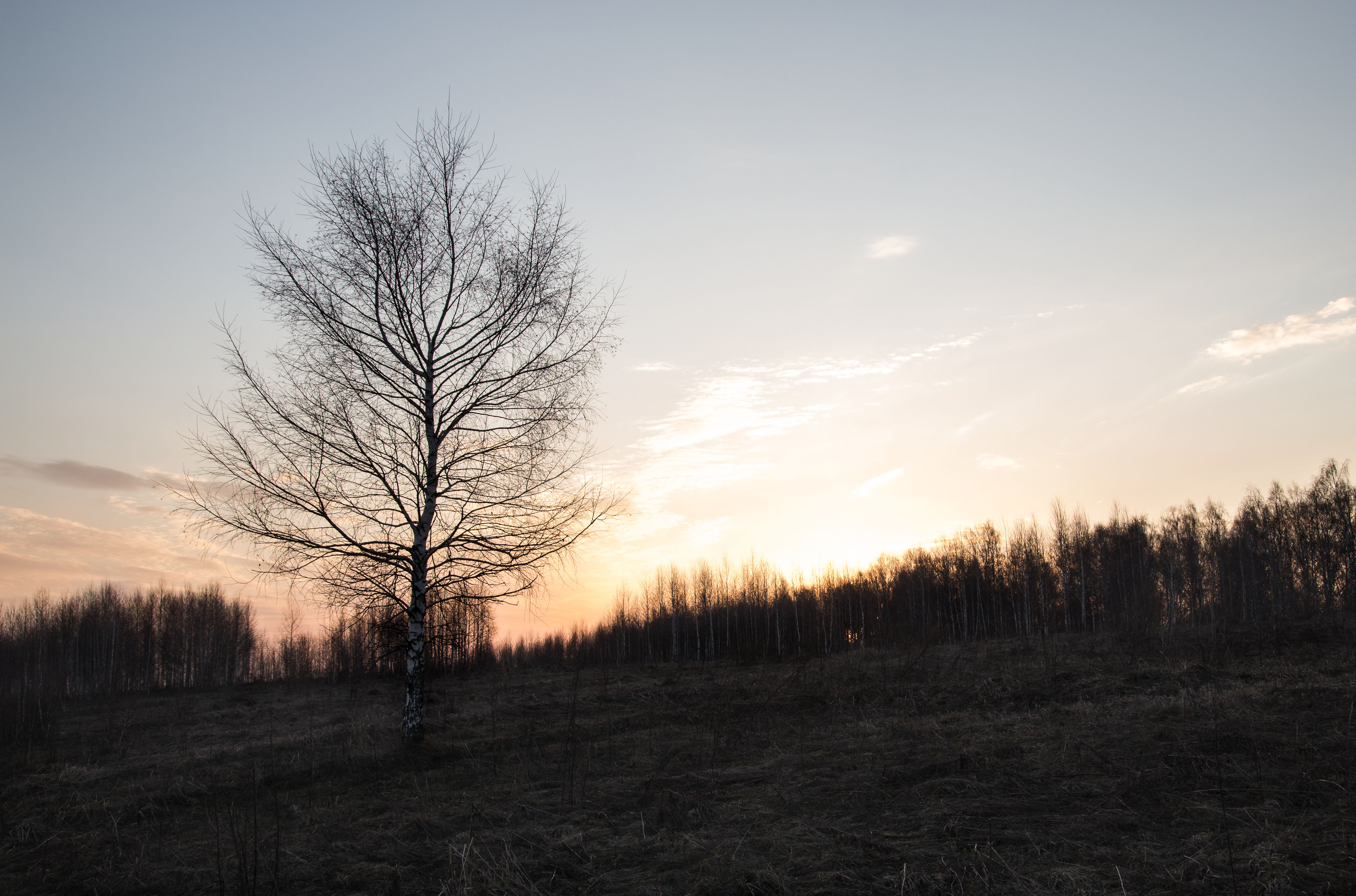 В этом примере хорошо получилось применить правило третей и многоплановость . Дерево выделено размещением, как главный объект. .с низкой точки съемки дерево выглядит выше, оно отлично выделяется на фоне неба.