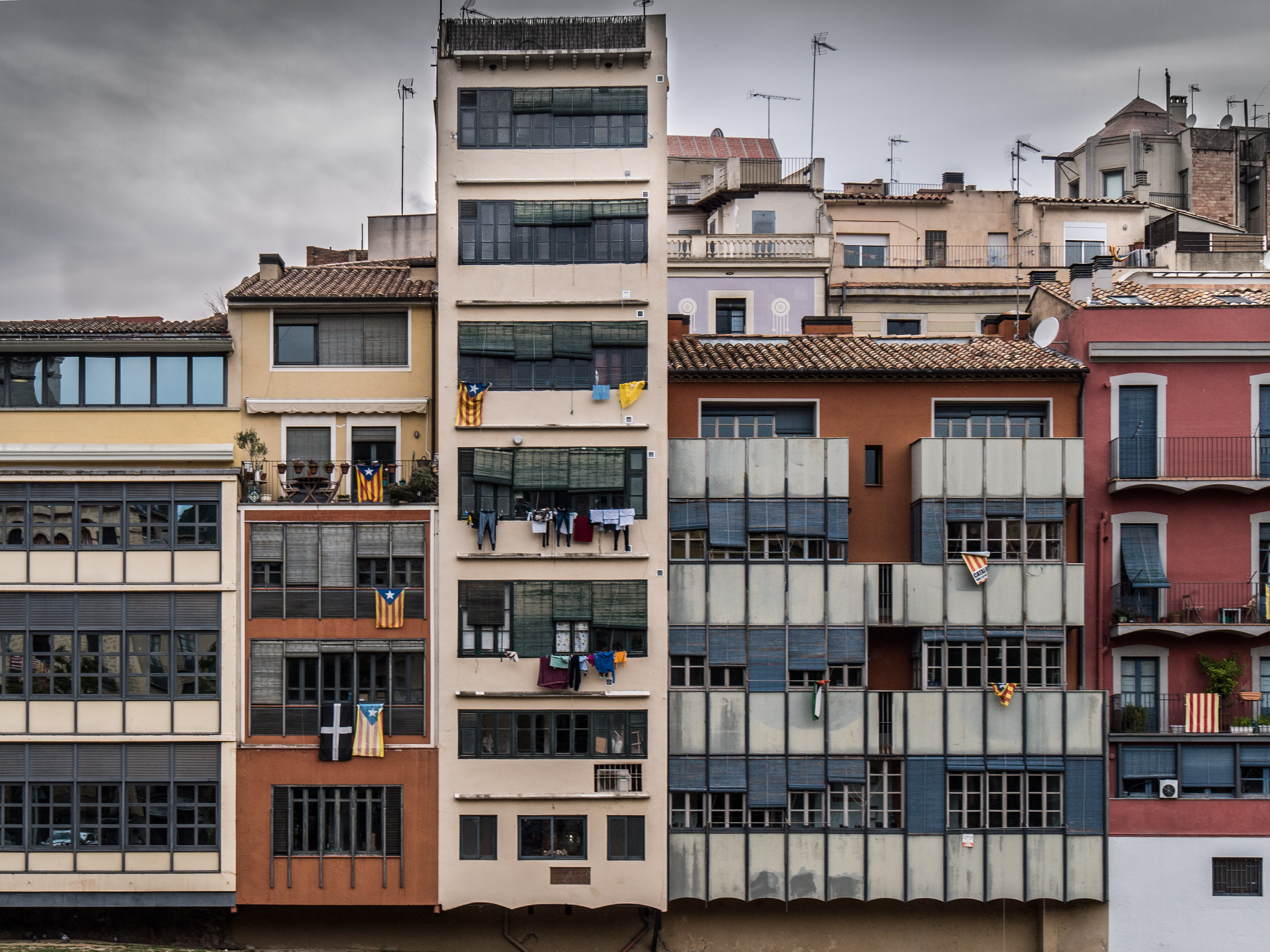 Исправила перспективу снимка, еще бы немного развернула по горизонтали, но тогда пришлось бы отрезать верхушку самого высокого здания. Сделала более темным и мрачным небо, при этом добавила контраста и четкости зданиям.