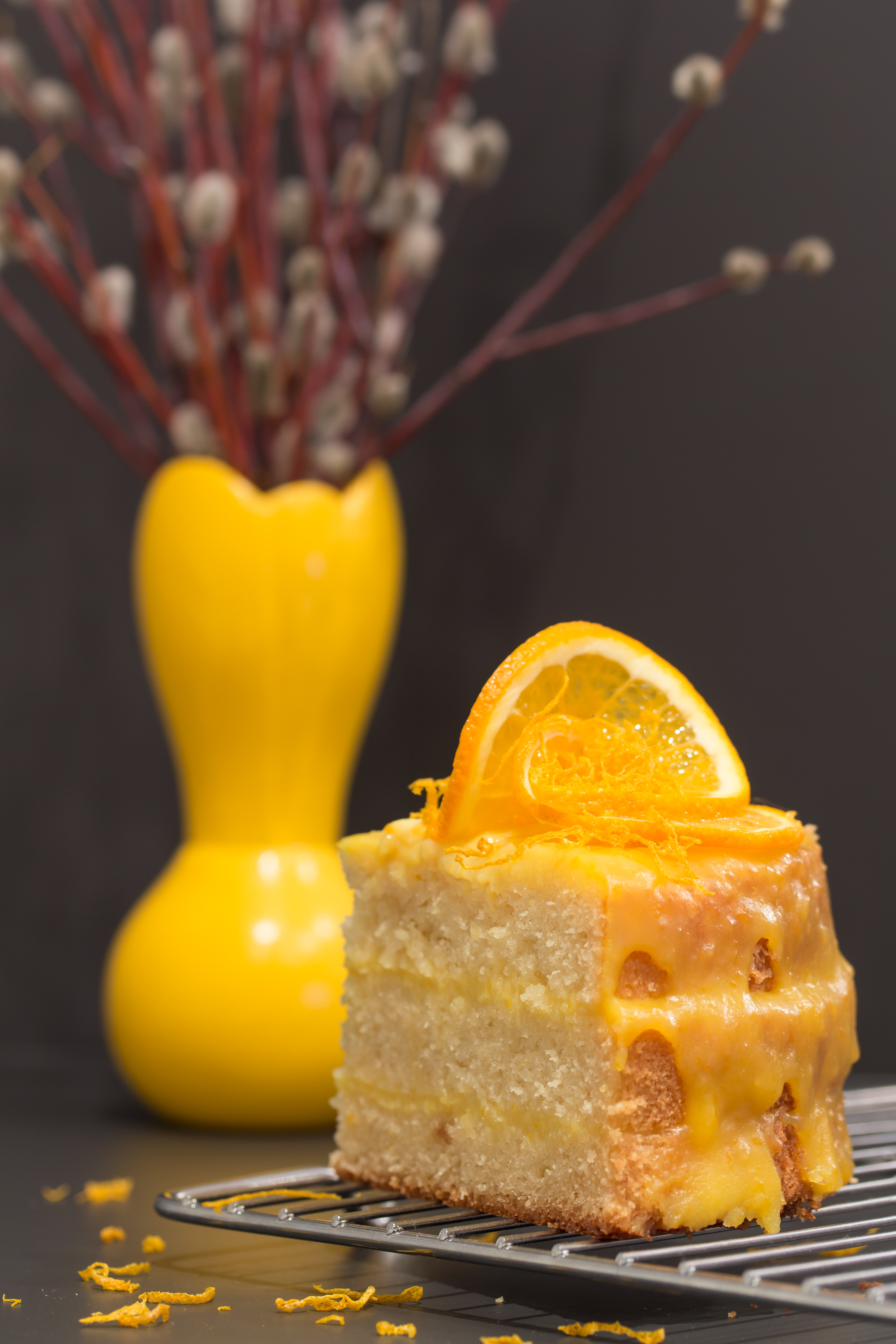 Апельсиновый торт.. Снимок выполнен в вечернее время суток при искусственном освещении, со штатива, ручная фокусировка..