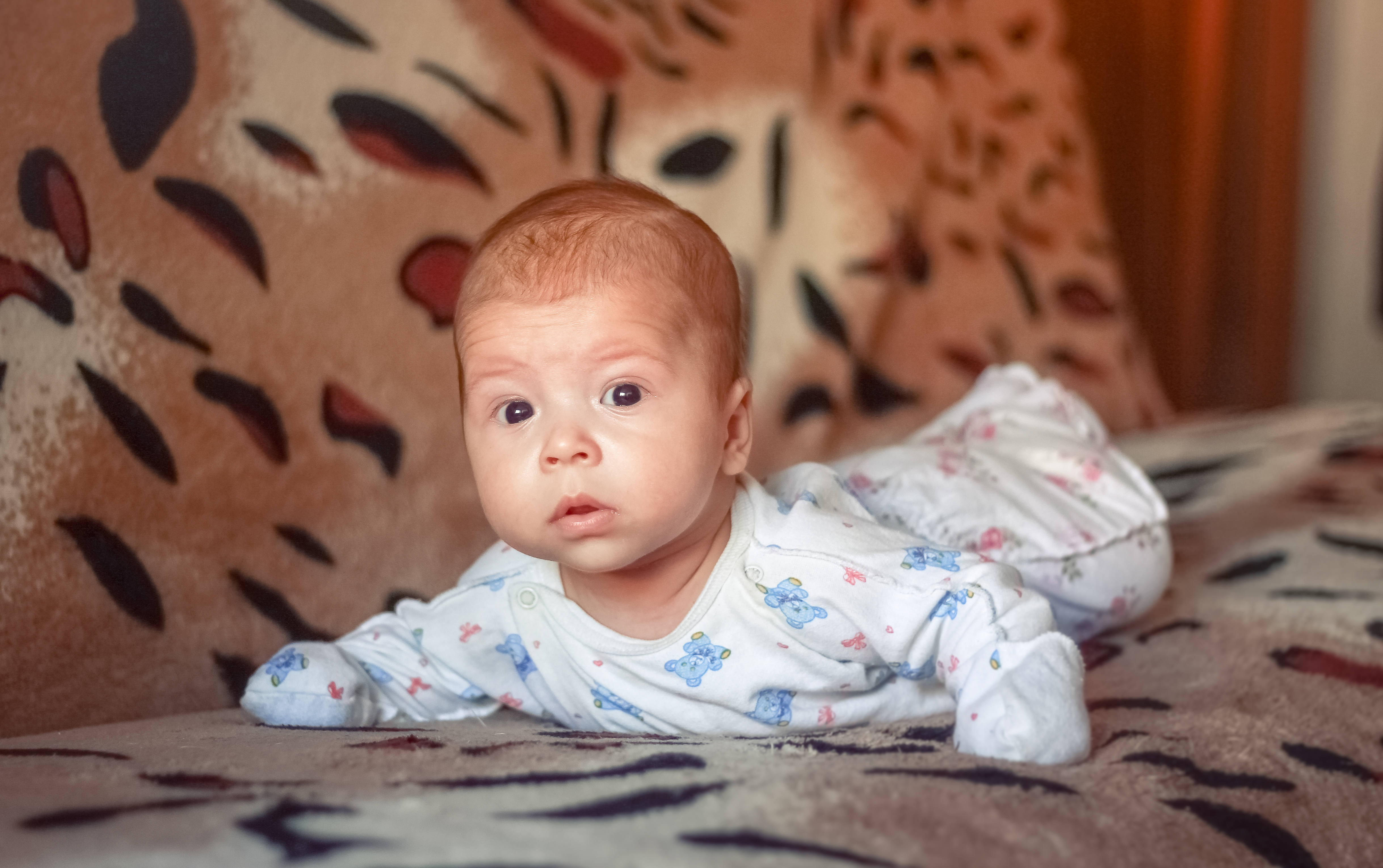 В глазах малыша есть блики - взгляд живой, яркий. И модель ровно мягко освещена - грамотно расположили героя относительно источника света.