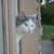 Скомпоновали с пространством и вне окна, что дает хороший объем снимку, кроме того, воздух нужен для развития взгляда животного. Можно даже еще побольше справа оставить.