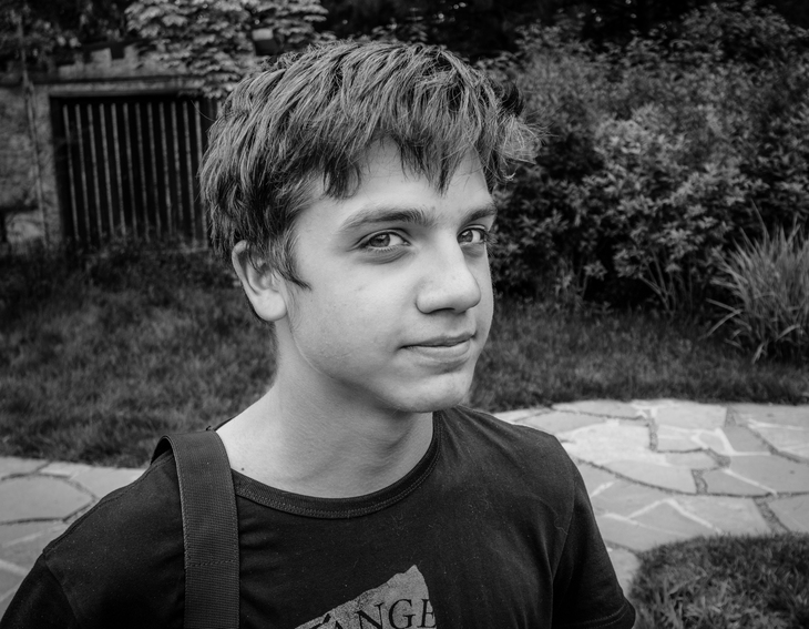 Фотография сына-подростка. Специально сделана на широкоугольный объектив чуть сбоку и сверху. Для того, чтобы зелёный фон не привлекал внимание и эмоции вышли на первый план, перевёл снимок в ч/б. На мой взгляд, неплохо передаёт настроение ))) В LR немного кропнул, чуть больше оставив места справа, хотя он туда и не смотрит (хотя и не уверен, что нашёл правильную композицию при кропе). Поправил тени и света, немного выделил глаза.