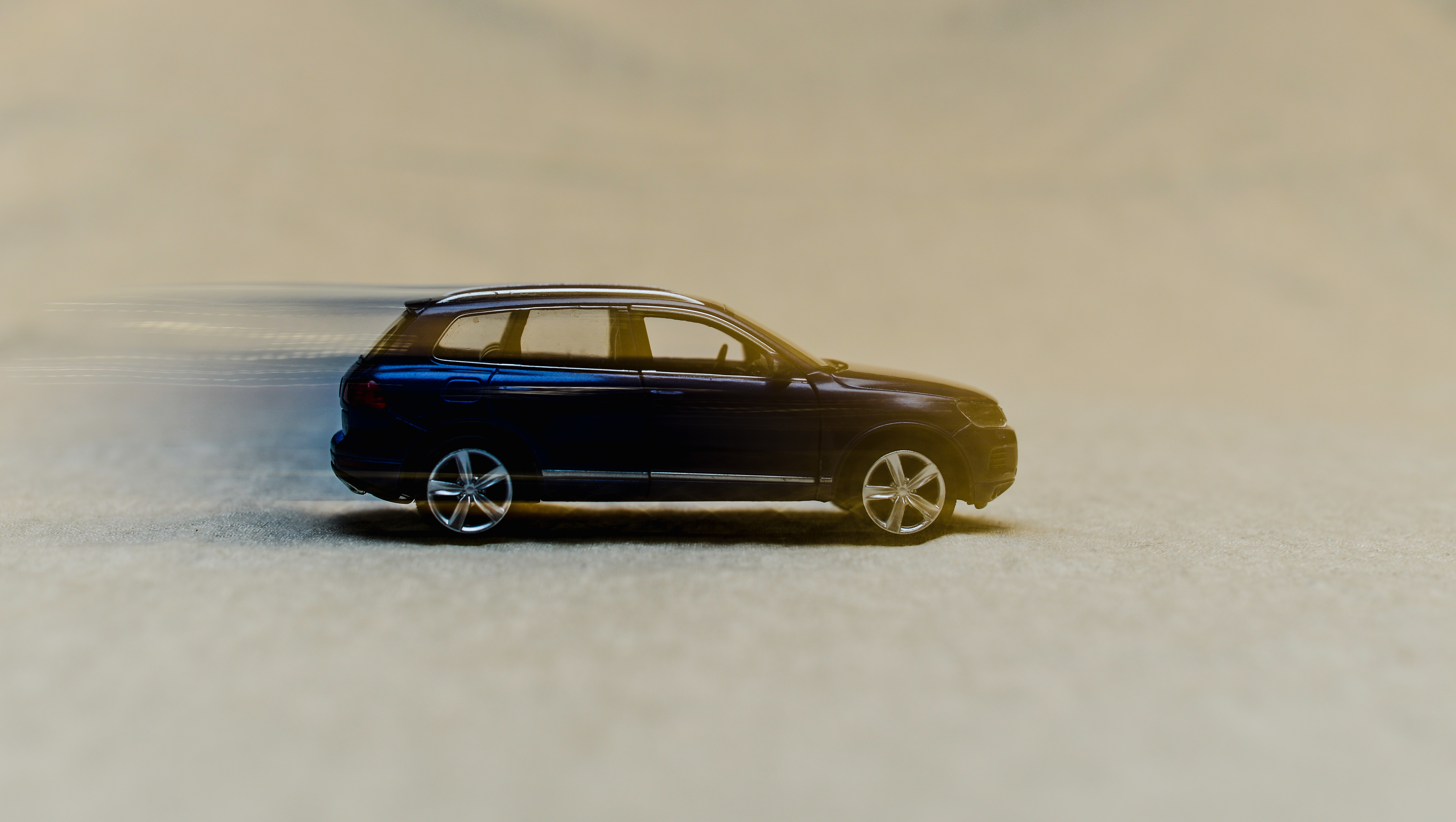 Отлично у Вас получилось зафиксировать машинку вспышкой и создать ощущение движения , с помощью смазанного следа позади игрушки.