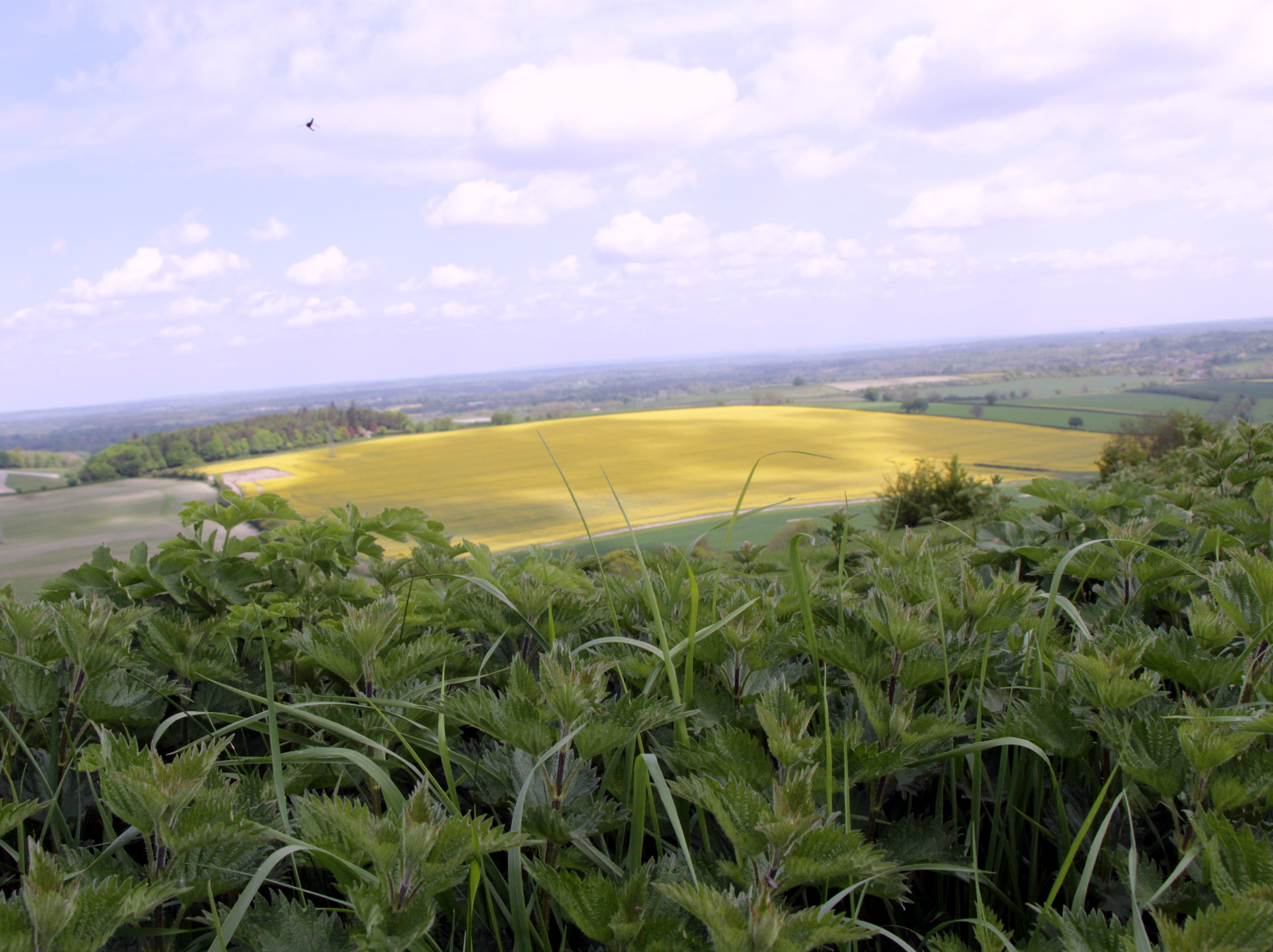 Пейзаж снимался на приоритете диафрагмы; цель была охватить три плана (четкий передний, желтое поле и небо).