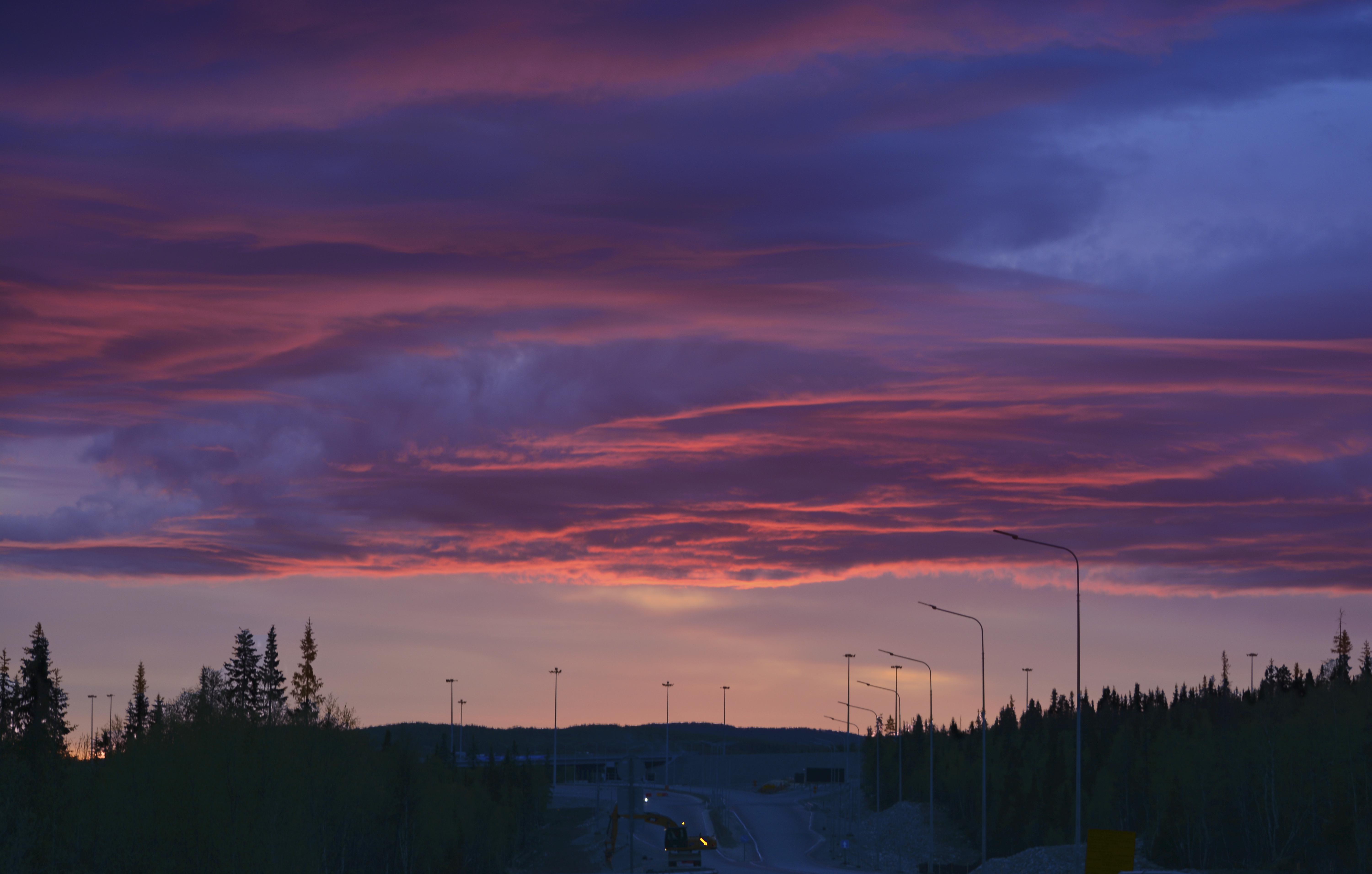 Потрясающее небо получилось! Хорошая работа. Горизонт сдвинут к нижней границе, что обозначило акцент на фактурных облаках. Силуэт дороги и леса можно было не вытягивать из тени, оставив в силуэте. Смотрится не нагружено при такой компоновке!