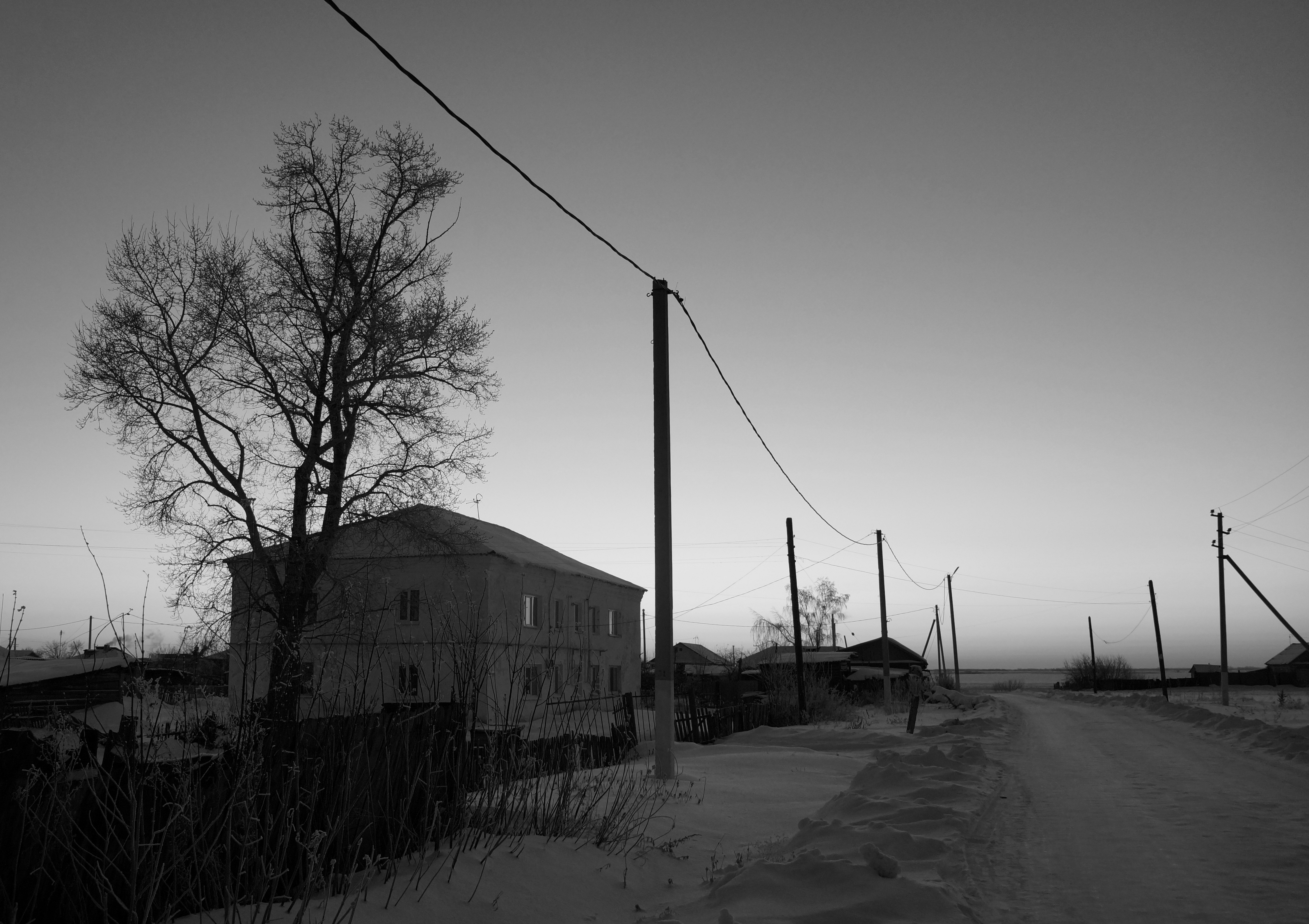 Добрый вечер! В этом сюжете мне нравится иллюзия того, что дом находится на краю света. Дорога, уходящая, как бы, в никуда или прямо в небо, четко обозначенная столбами. Фото одновременно и печальное, но и не лишенное светлой нотки, благодаря подсвеченному чистому бездонному небу. Диафрагма открыта, так как не хотелось еще повышать исо. Есть провалы в черное(
