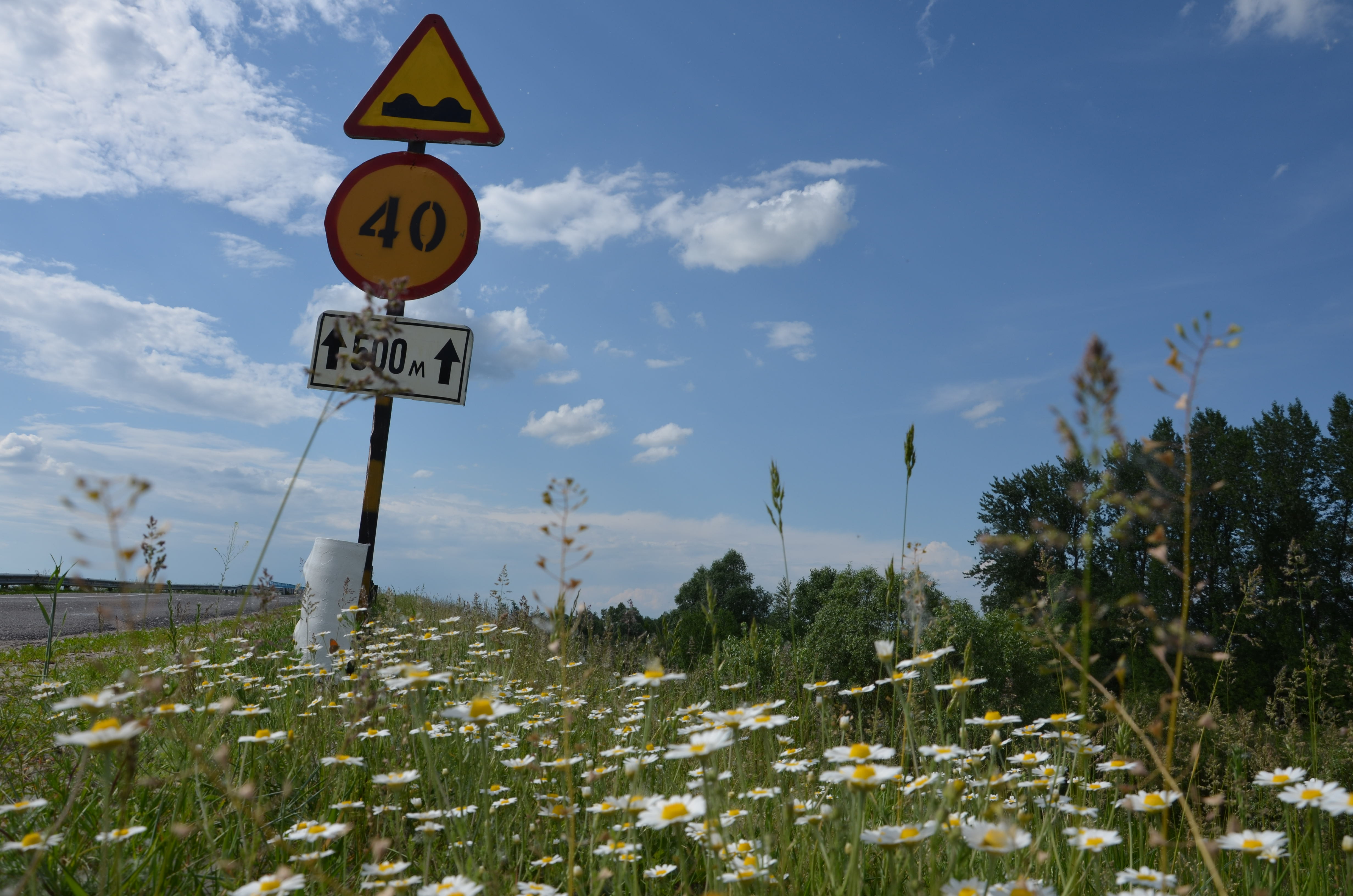 Скадрировала,добавила контраста,насыщенности,заретушировала знак,добавила фигуру,нарисовала ромашку,чуть размыла,затемнила.