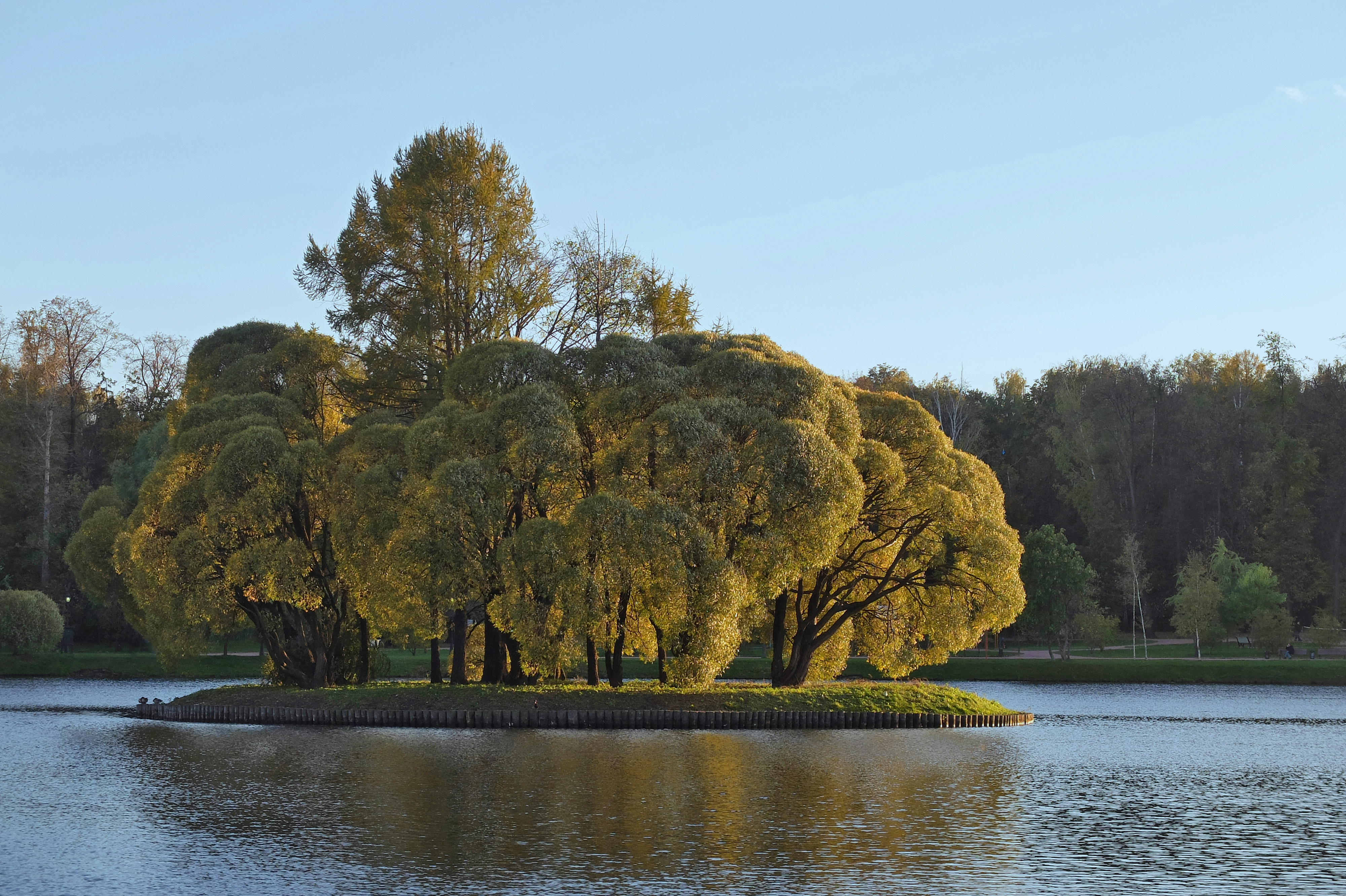 Урок 5: Фактура. Фактура в свете. Это мой «любимый» островок, я снимаю его каждый раз, когда бываю в Царицыно, и каждый раз он выглядит по-разному. Наиболее эффектно получился снимок в вечернее время, когда лучи солнца пронзили насквозь кроны деревьев. Показать красоту острова – основная цель, поэтому показать его фактуру во всех деталях солнышко очень помогло. Вот для сравнения другой снимок того же самого в пасмурную погоду: