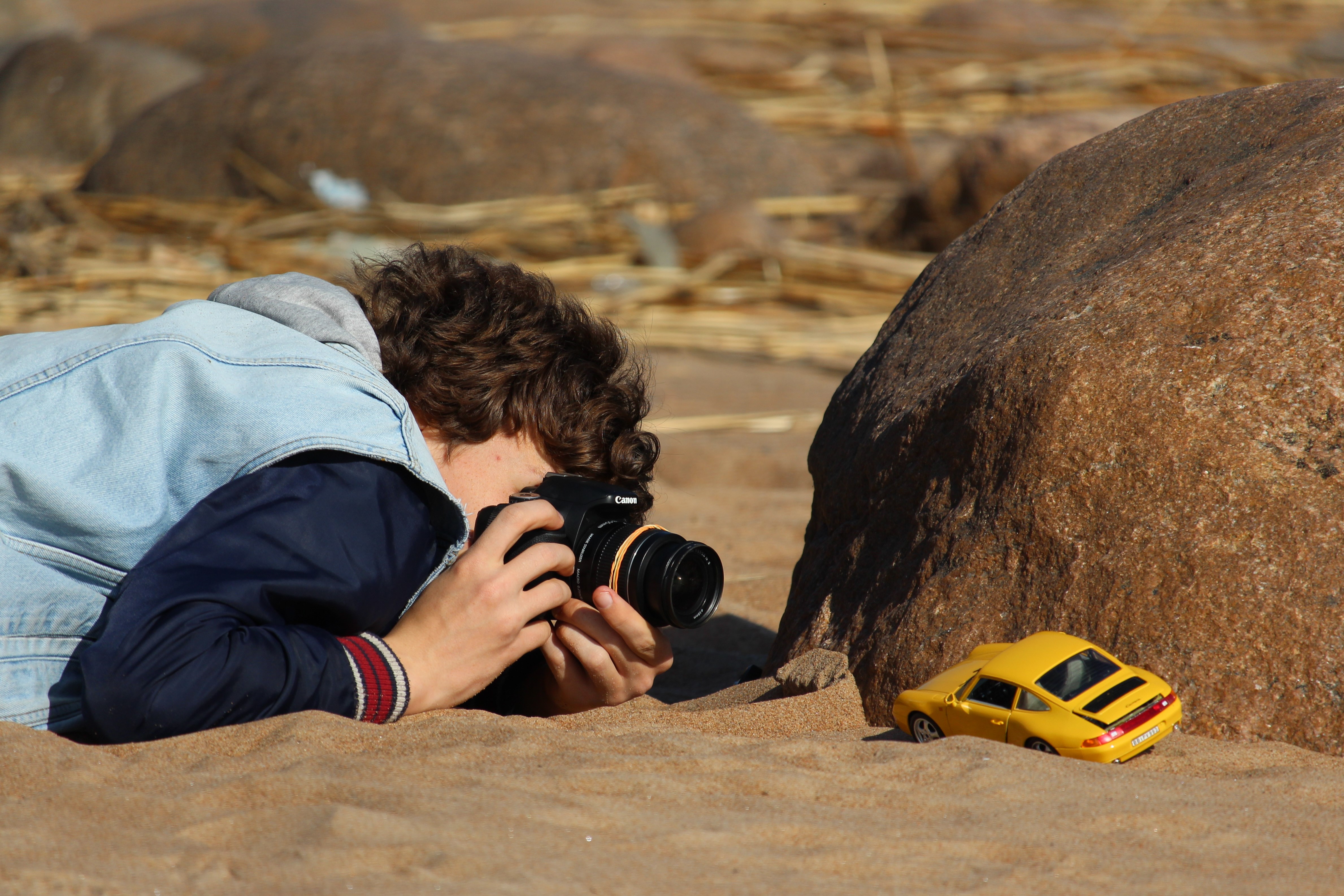 Мне нравится как перекликаются между собой цвета травы на заднем плане, резинки на объективе и машинки. Это все создает такой цветовой треугольник, в котором взгляд блуждает от одного предмета к другому. И свет очень приятный, мягкий