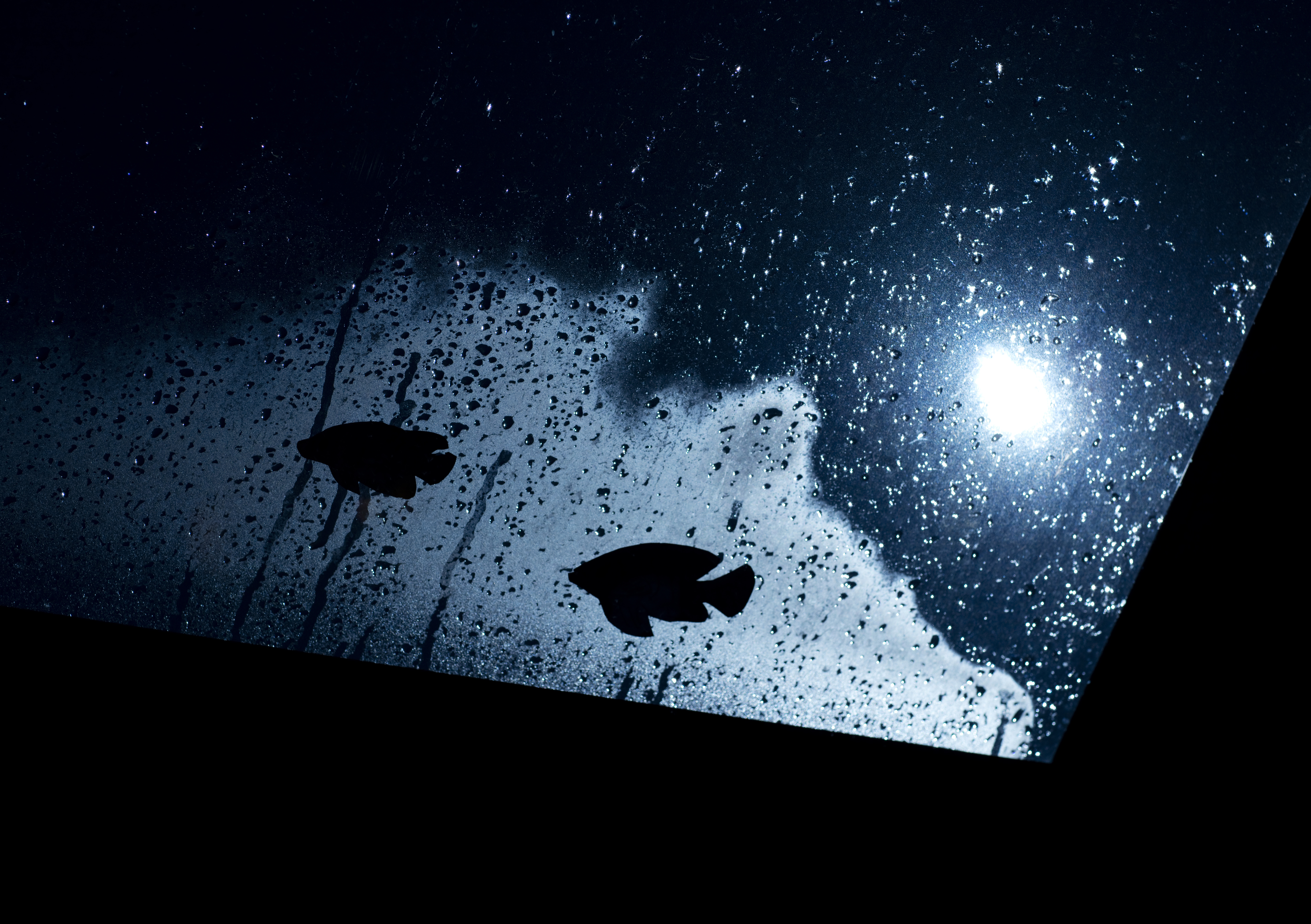 Окно в ванной комнате лунной ночью напомнило подводный мир. Не хватало только рыбок - пришлось быстро изготовить.