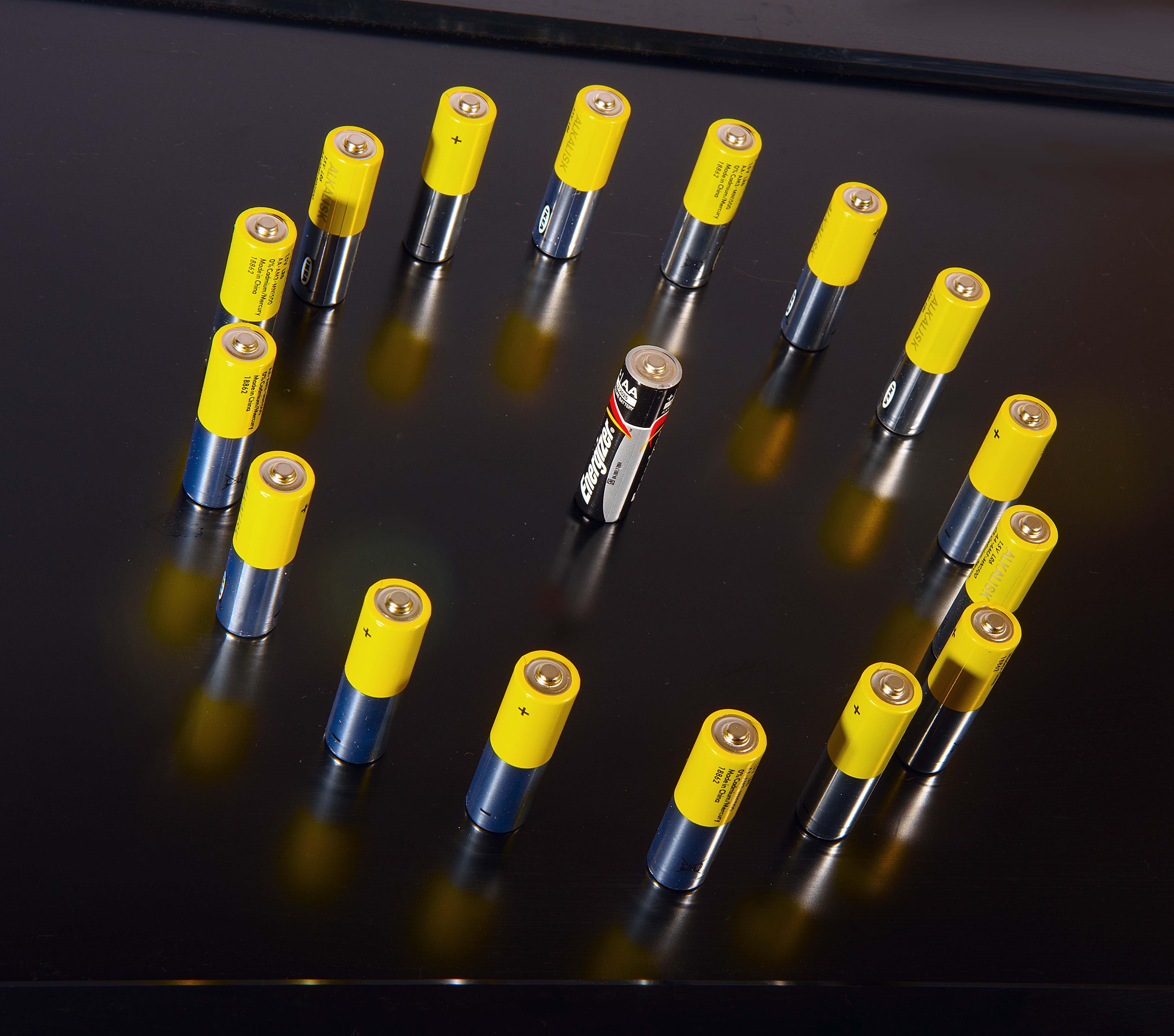 Хорошо поработали с освещением, свет равномерный . Отражения батареек раздвигает пространство кадра, делает его шире.