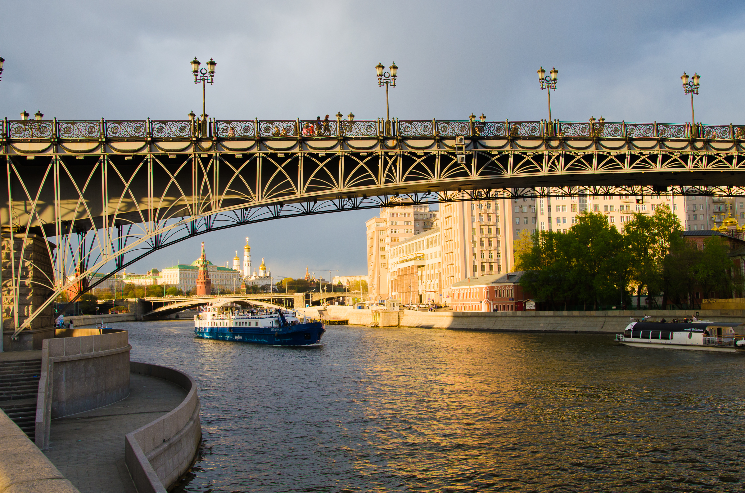 Еще один вариант с этим мостом. Горизонтальную линию моста расположила на линии третей. Корабль на пересечении линий третей. Перед ним оставила место для направления движения. "Дом на набережной" освещен солнцем, оно красиво выглядывало через тучи.
