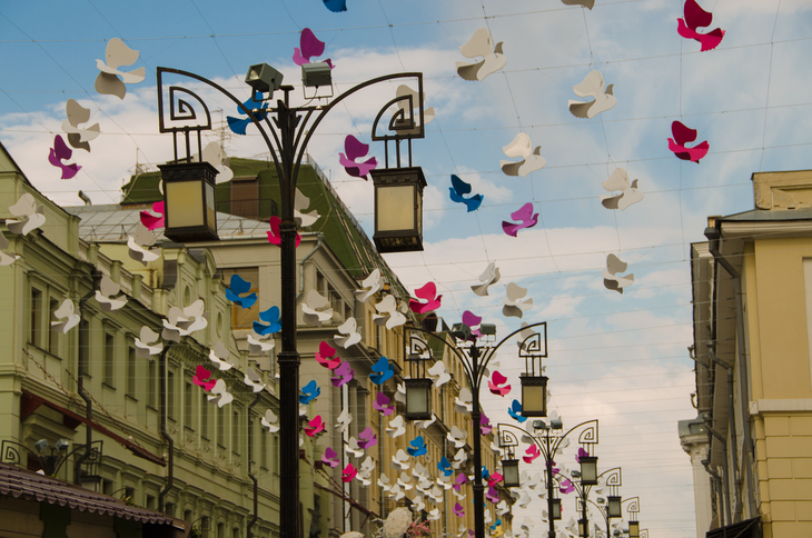 Ещё один замечательный снимок, с цельным и гармоничным решением в плане композиции! Фонарные столбы задают отличный ритмический рисунок от переднего плана к дальнему, при этом множество бумажных фигурок создают отличное визуальное обрамление снимка, привлекая внимание зрителя. Создаётся атмосфера и настроение. Продолжайте в том же духе!