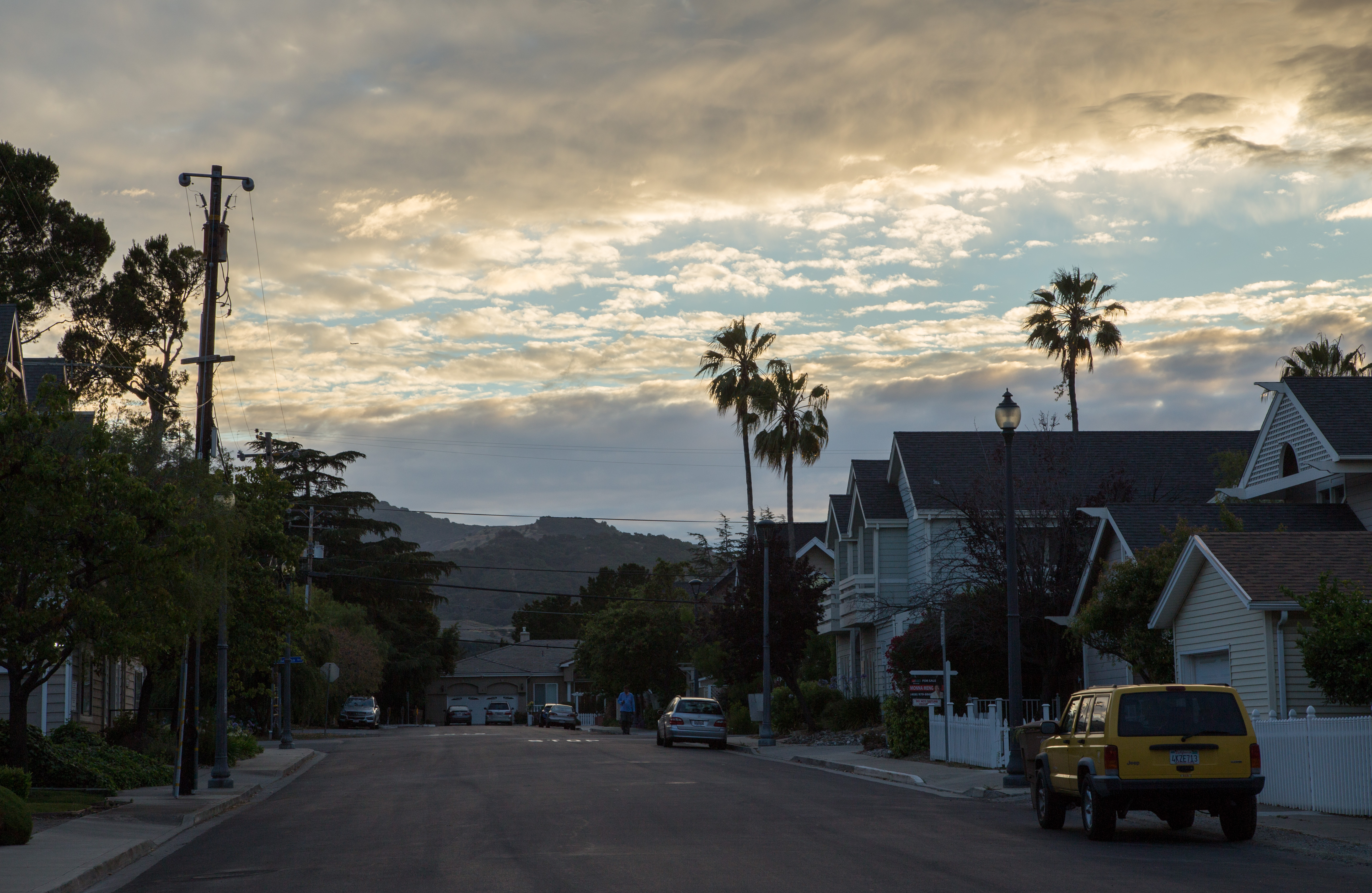 В нескольких шагах от моего дома. Эта улочка называется "Гранада". Мне кажется что жёлтая машина вторит краскам заката.