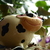 Коровка хорошо вписывается в фон с зелеными листиками.
