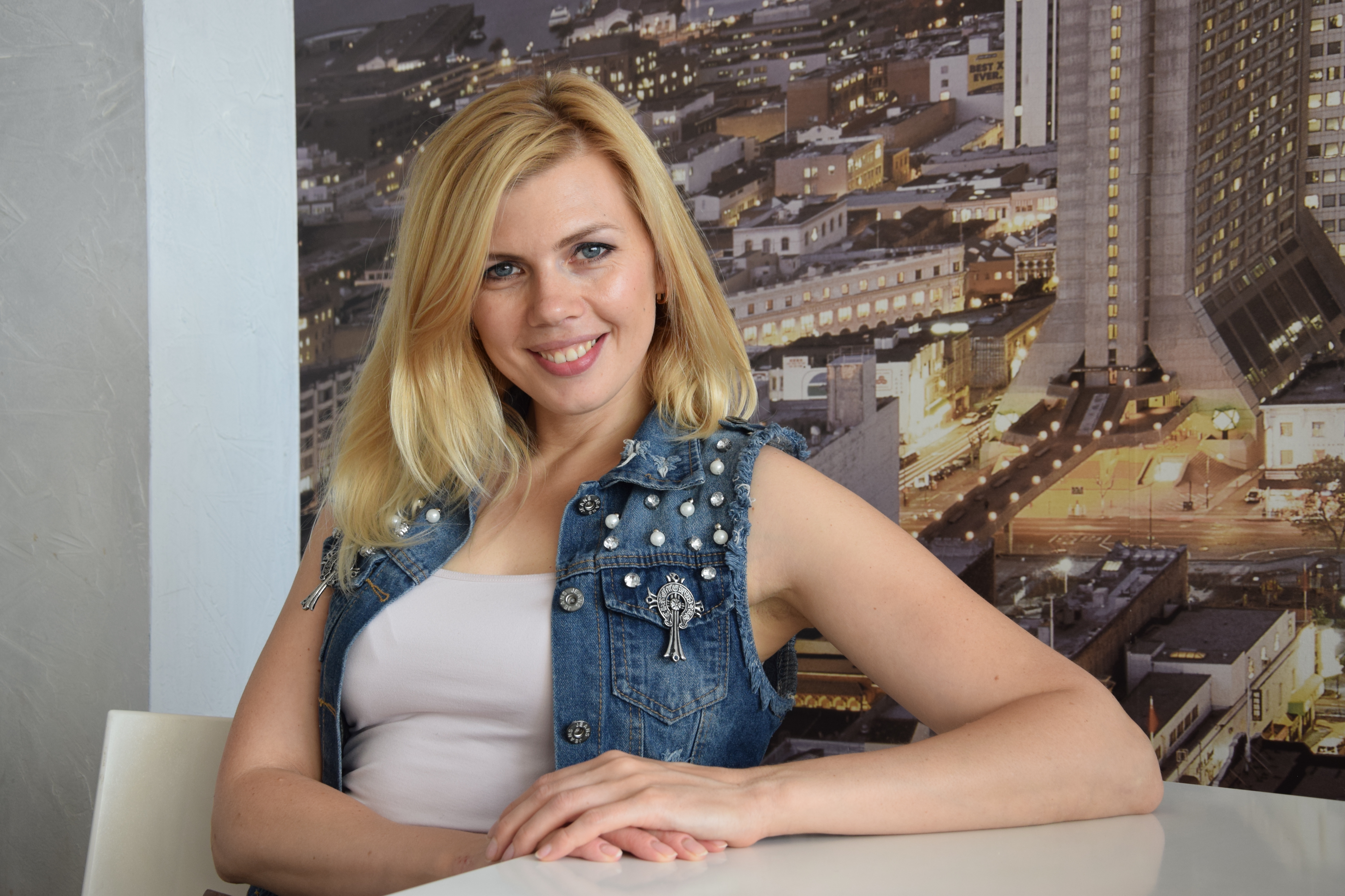 Позирование открытое, чудно смотрится милая улыбка девушки.
