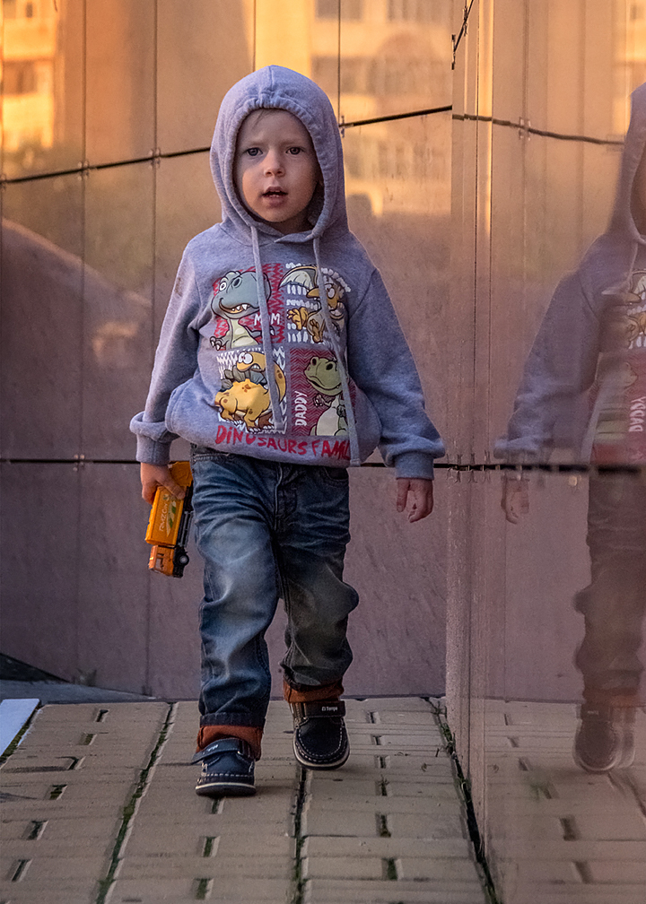 Пространства оставили достаточно и сверху, и снизу, чтобы ребенок не был зажат границами кадра.