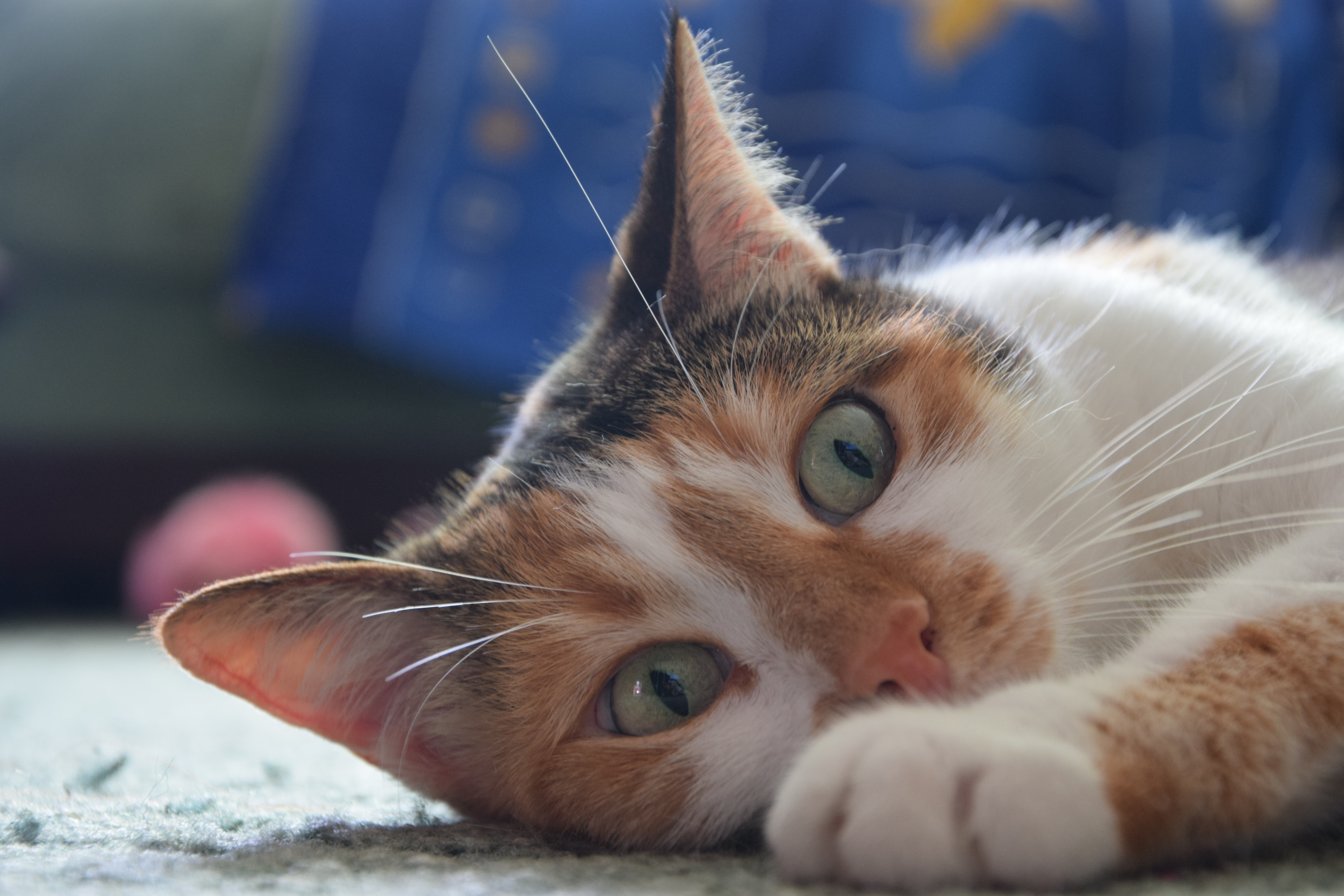 Приподняв ИСО получилось прикрыть сильнее диафрагму , портрет хорошо детализирован. Размытый фон усиливает внимание на кошечке.