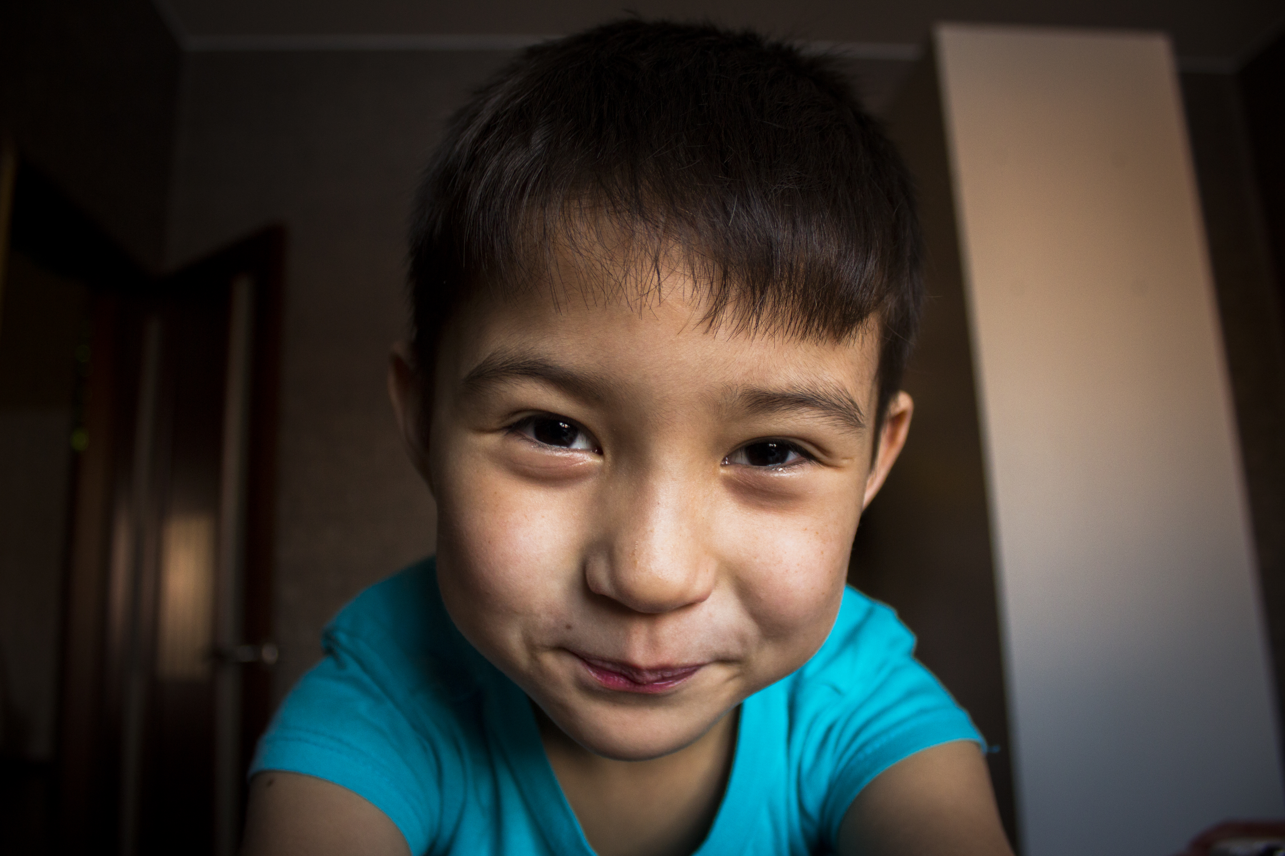 Не совсем уверен, что кадр удачный, но всё таки решился его показать. Как мне кажется, ребёнок не совсем не похож на себя. Использовал фокусное расстояние 18 mm. За счёт этого голова получилась непропорциональной, большой.