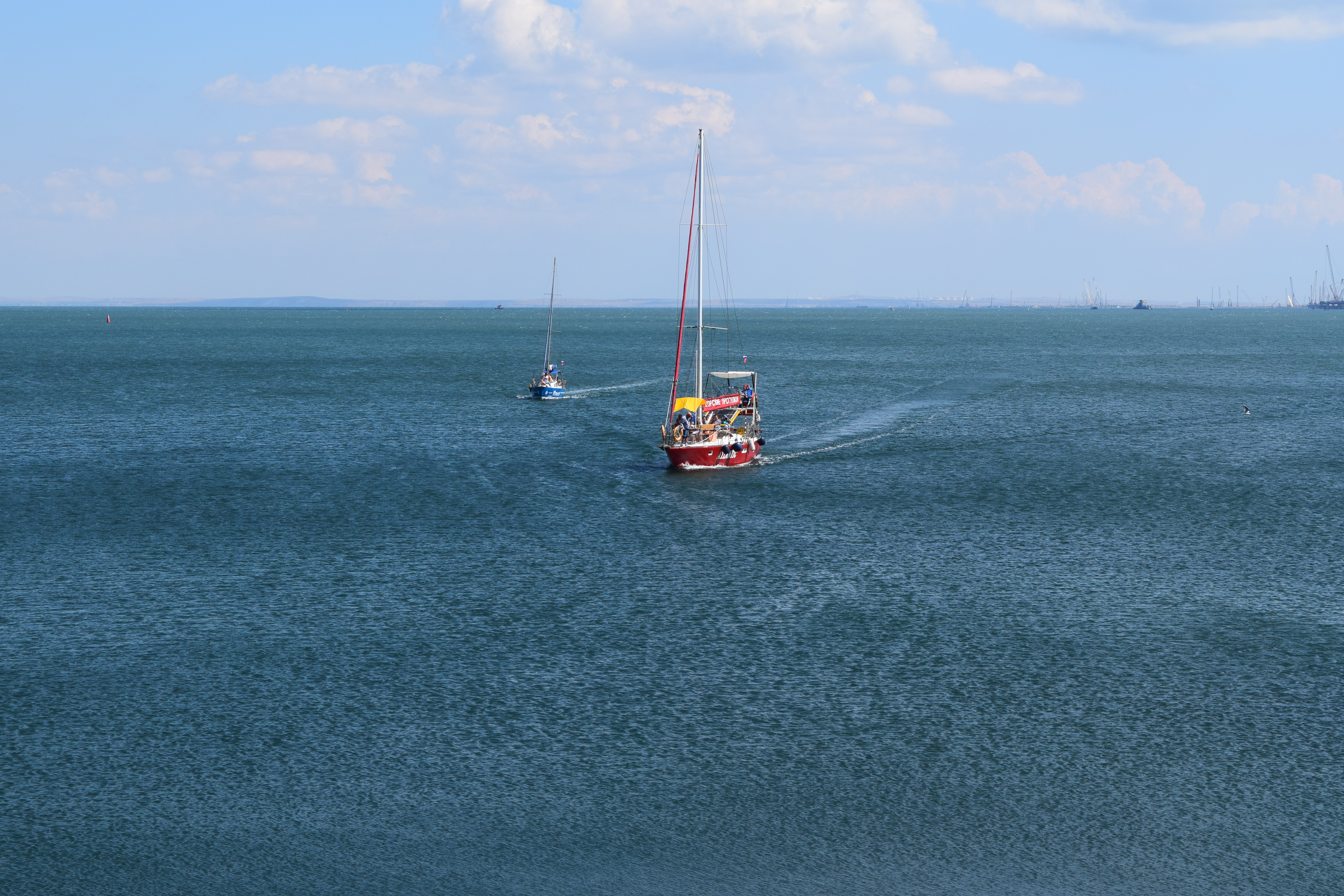 Ну вот, теперь момент пойман удачнее, формы яхт читаются лучше, друг друга не перекрывают, цвета сморятся натуральнее, линию горизонта увели дальше от центра.