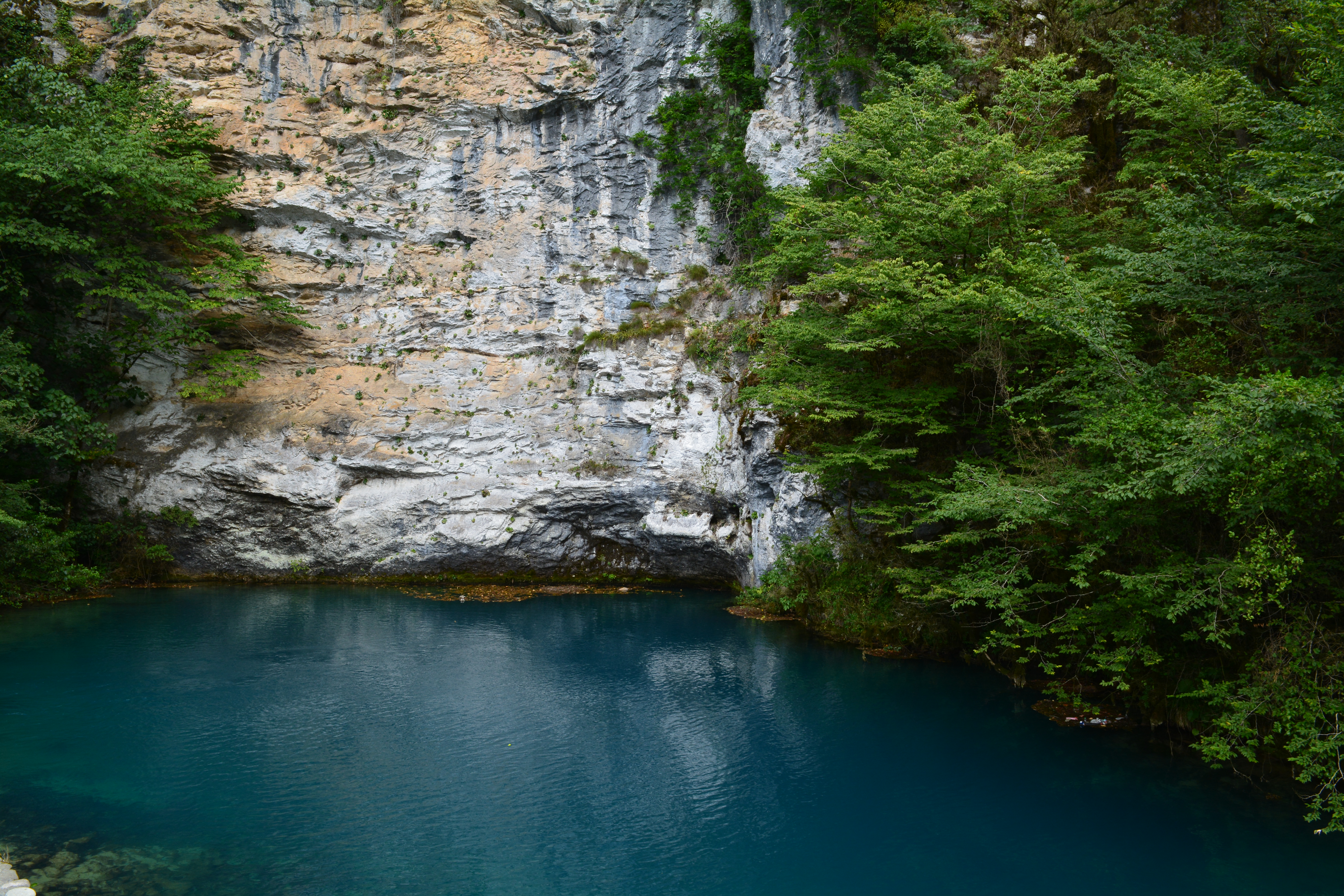 Абхазия, Голубое озеро. Остановились буквально на 15 минут, на берегу толпы туристов, кое как нашёл подходящий ракурс для удачного кадра. Однажды старый охотник целый день, блуждавший по горам в поисках добычи, возвращался уставший домой. Увидев на своём пути озеро, он решил умыться в нём, а когда умылся, его лицо помолодело. Когда он пришёл домой, его старая жена стала расспрашивать, где находится озеро. А выведав, отправилась на это озеро. Прождав свою жену довольно долго, охотник пошёл следом за ней. На озере же он увидел маленькую девочку, она не знала, как вернуться обратно домой. Легенда о происхождении голубого озера Абхазии. В древние времена на том месте, где сейчас находится голубое озеро, была пещера. В ней жил мудрый старец, у которого были необычайно голубые глаза. Он в прошлом был охотником. Молодые охотники знали об этом, и часто заходили к нему в гости за советом, ведь опыт у старика был большой в этом деле. А в знак благодарности, возвращаясь с охоты, делились с ним своей добычей: шкурами зверей, мясом. Как-то раз в те места забрели чужестранцы. Была ненастная погода, и они попросились к старику на ночлег. Оказав гостеприимство, старец накормил их и приготовил место для ночлега на шкурах животных. Чужестранцы, увидев так много шкур животных: медведей, косуль, зубров, куниц, оленей, решили убить хозяина и забрать их себе. Когда же их план был почти осуществлён: старец лежал мёртвый, шкуры собраны. В этот момент в пещеру хлынул большой поток воды и затопил всё вокруг, не дав злоумышленникам скрыться. На том месте теперь голубое озеро. А голубые глаза старика, оставшегося лежать на дне пещеры, отражаются в водах этого озера.