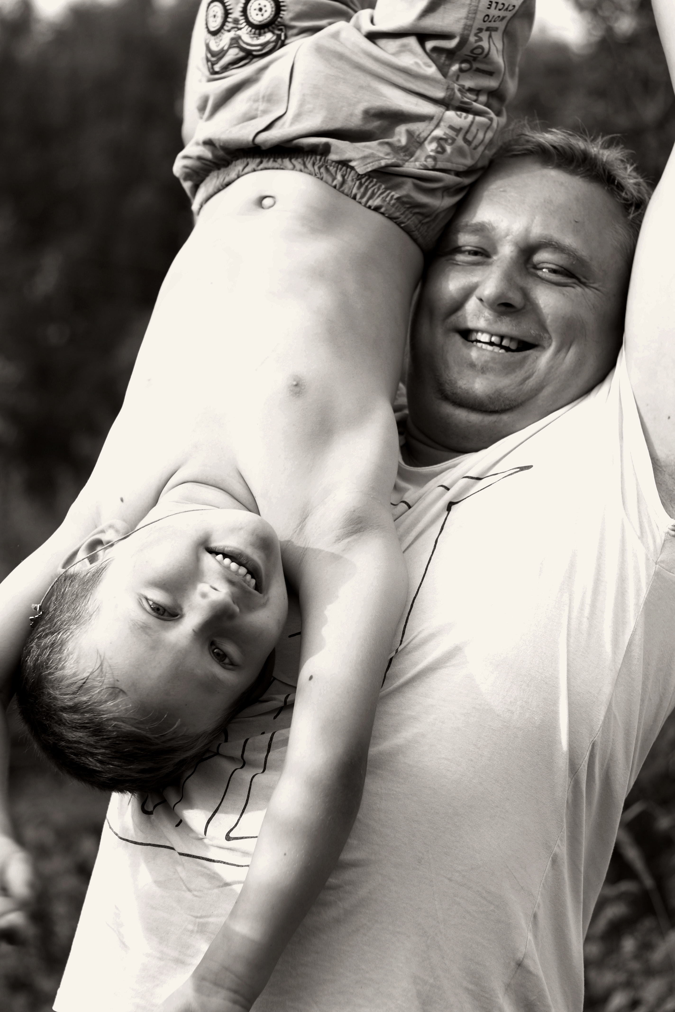 Диафрагма открыта и лицо папы не попало в поле резкости.