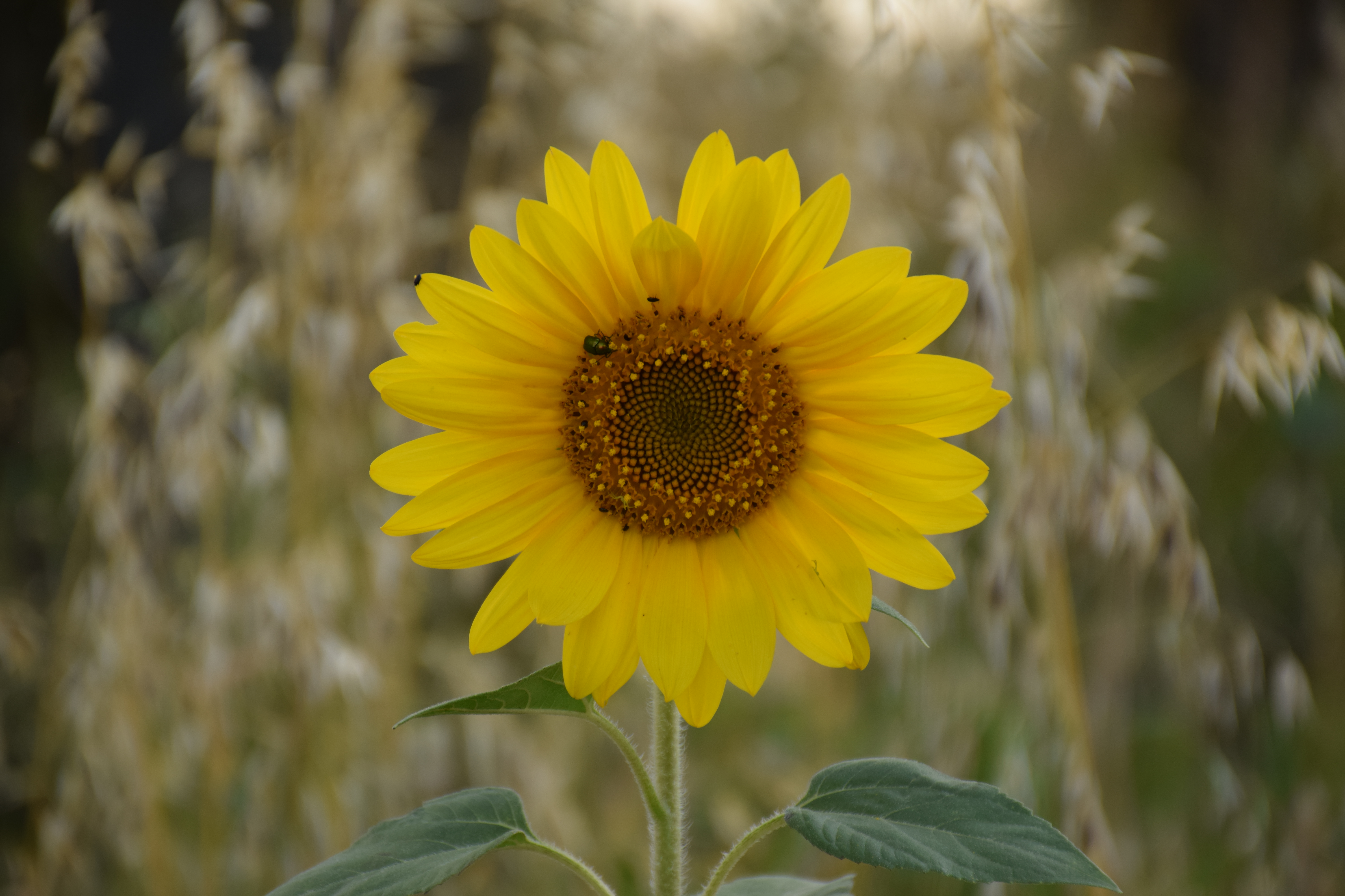 Фон красиво размыт, подсолнух отлично выделяется а таком фоне.
