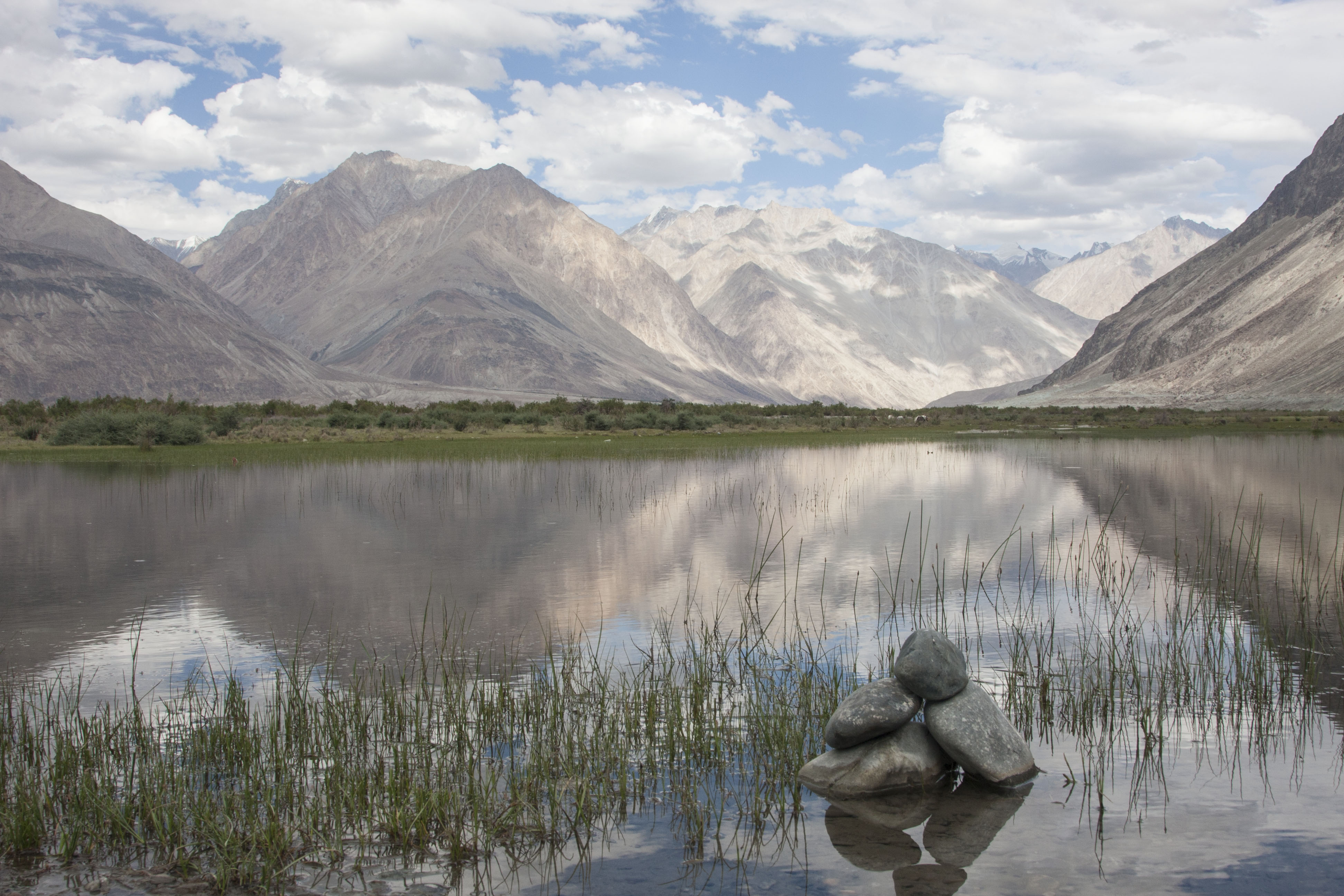 Действительно, снимок получился сбалансированный и уравновешенный. Нашли интересный передний план, и разместили камушки в композиционно выгодном месте на линии третей. Передний план является своеобразной точкой отсчёта, с которой зритель начинает знакомство с кадром.