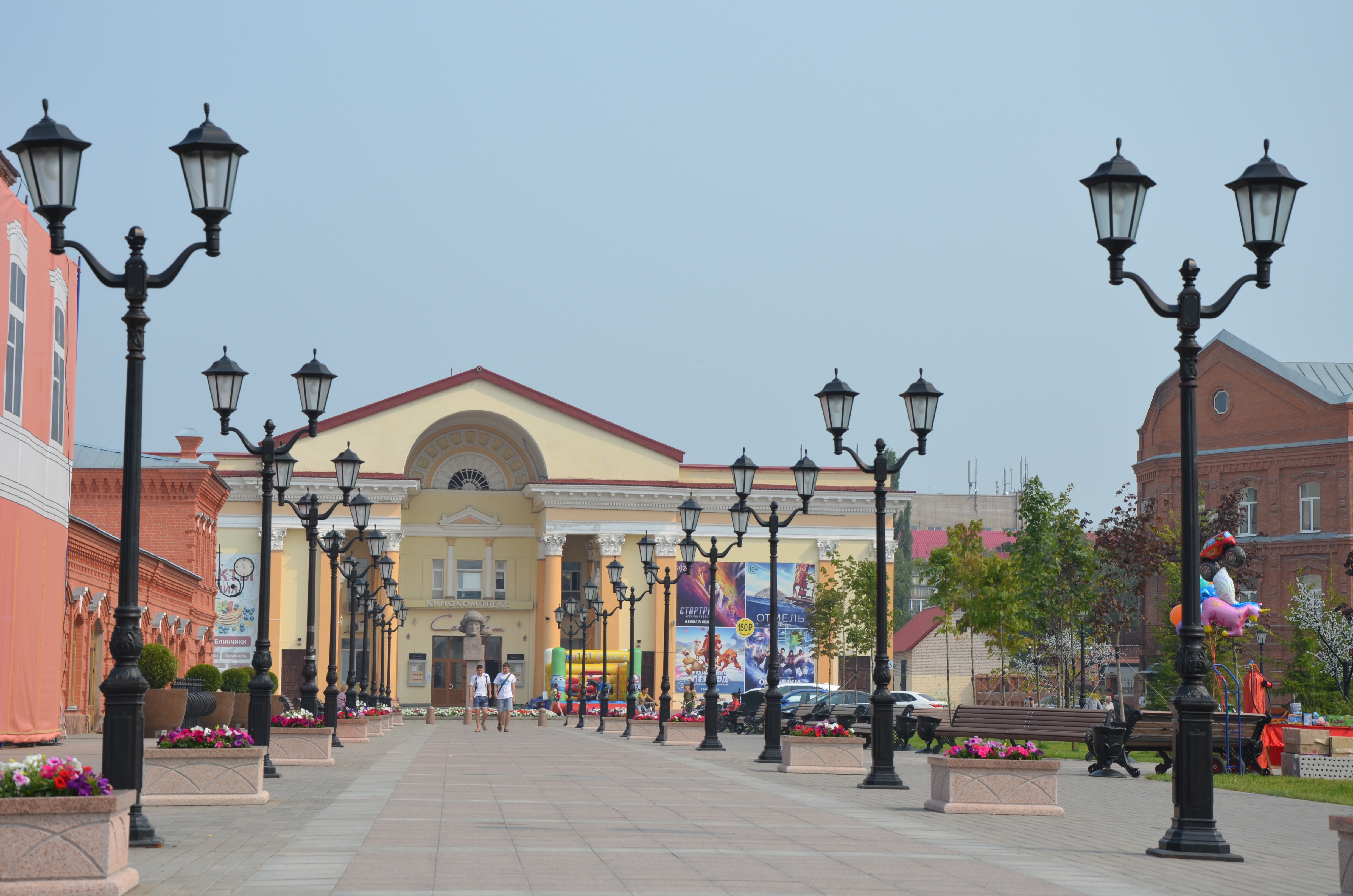 Фонарные столбы задают ритмический рисунок на протяжении всей перспективы. Клумбы его повторяют.