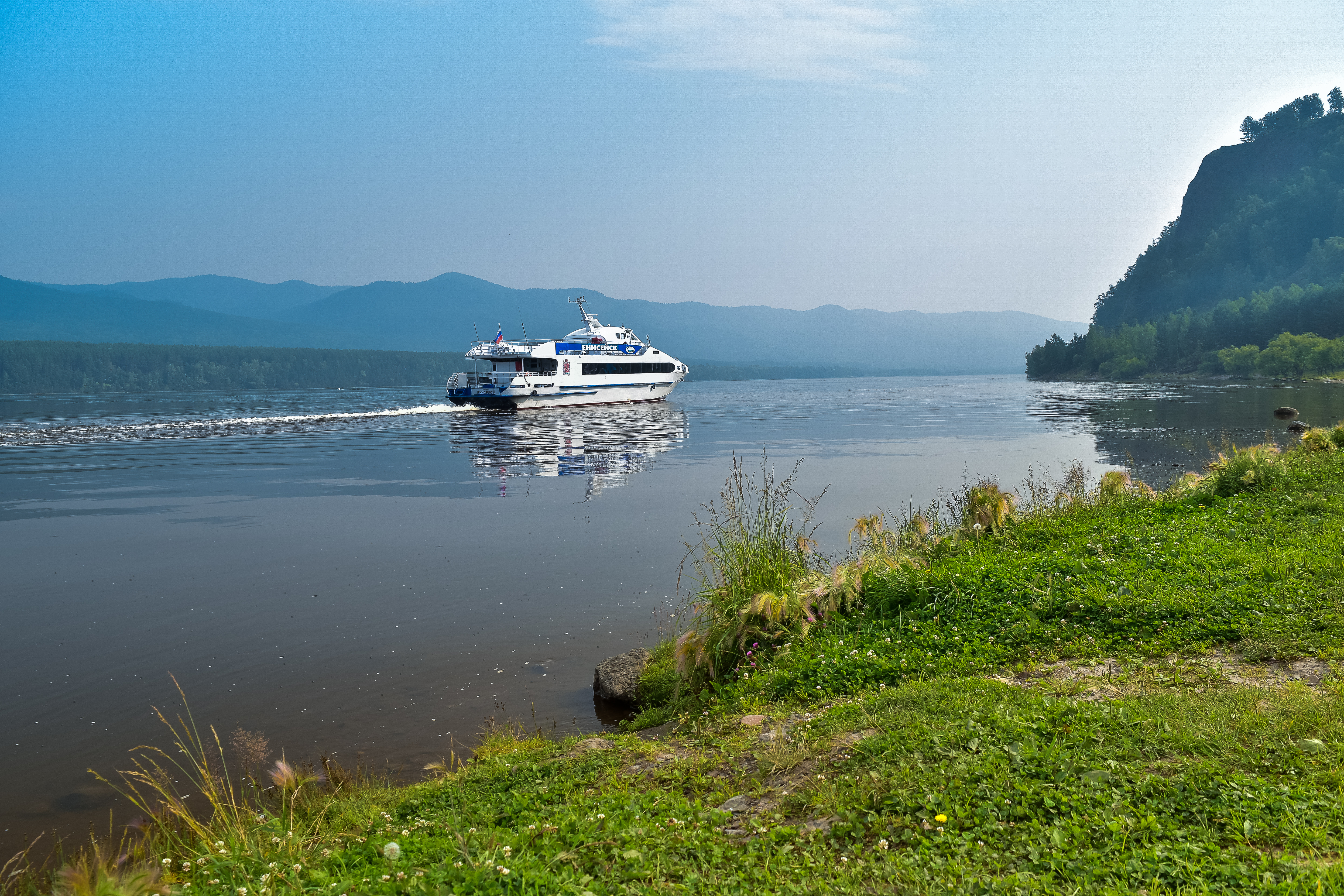 Момент красивый, отлично смотрится небольшой корабль на спокойной поверхности воды, он создает центр композиции. Дальние берега скрыты в голубоватой дымке, объемно смотрится тональная перспектива и снижение контраста по мере удаления планов от камеры.