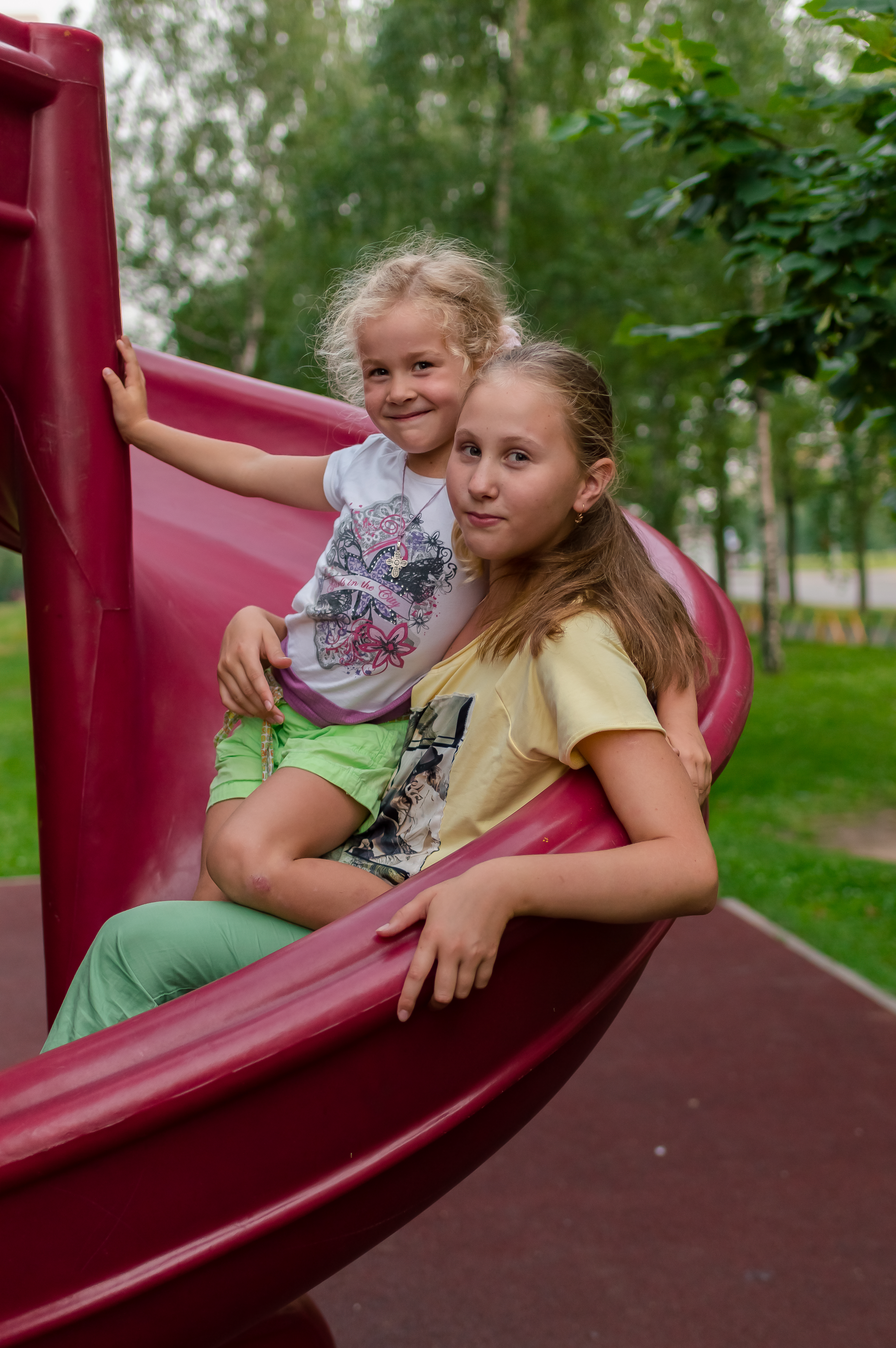 Сфотографировал детей на детской площадке во время прогулки. Мне показался удачным момент скатывания с горки. И потом я просто их очень люблю.