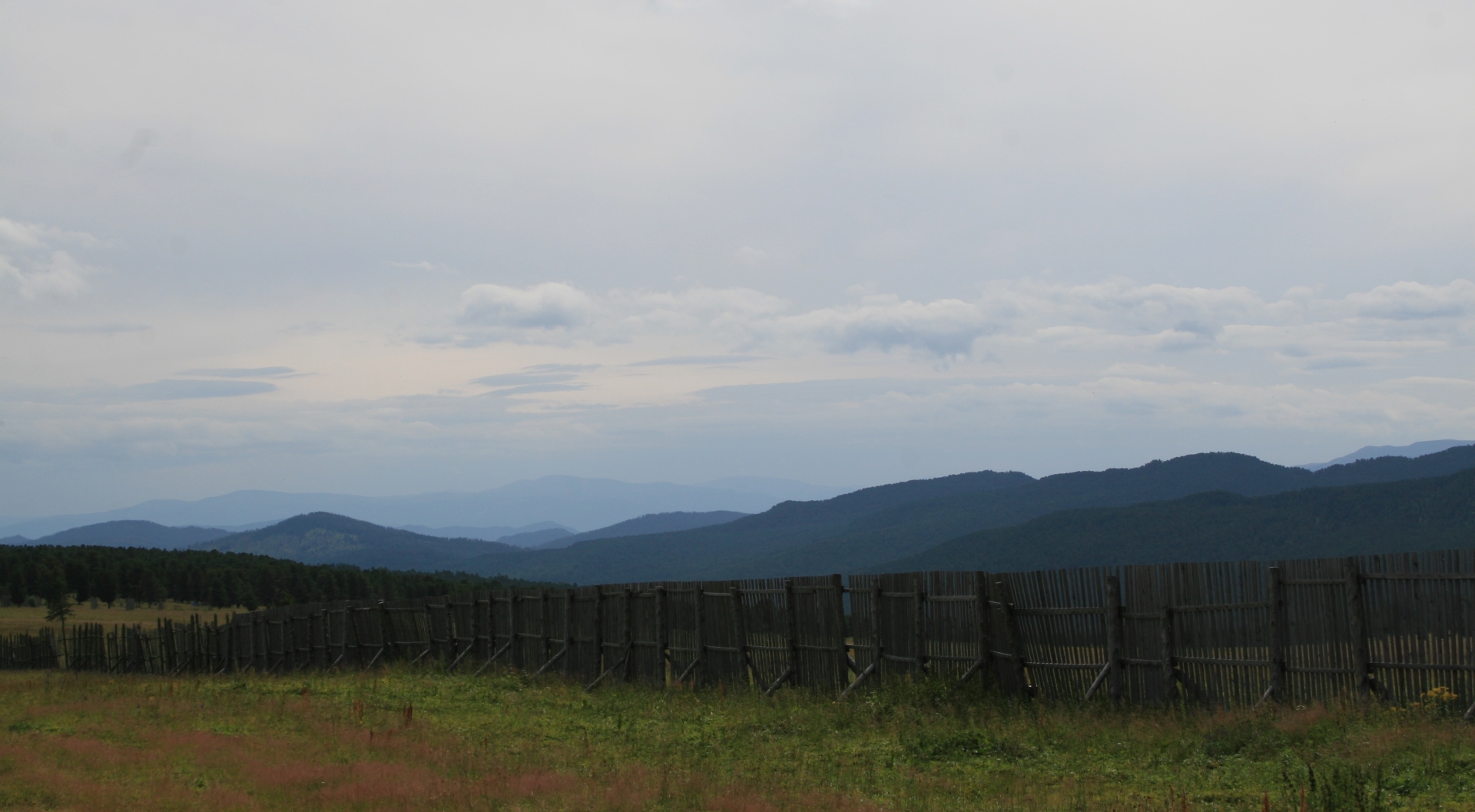 Вид на горы с Семинского перевала. Есть вопрос по компоновке - понравился забор, добавляющий что-то новое в горный пейзаж, но не уверенна, что правильно его вписала в кадр.